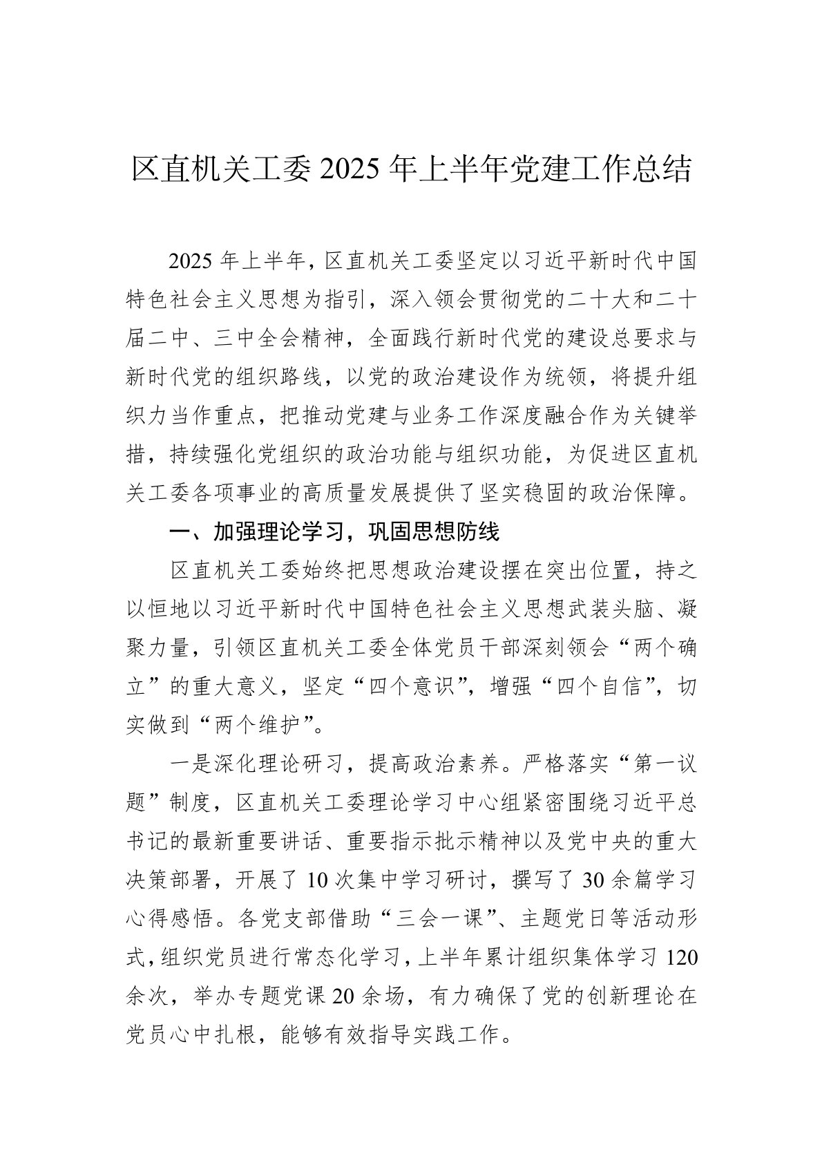 区直机关工委2025年上半年党建工作总结