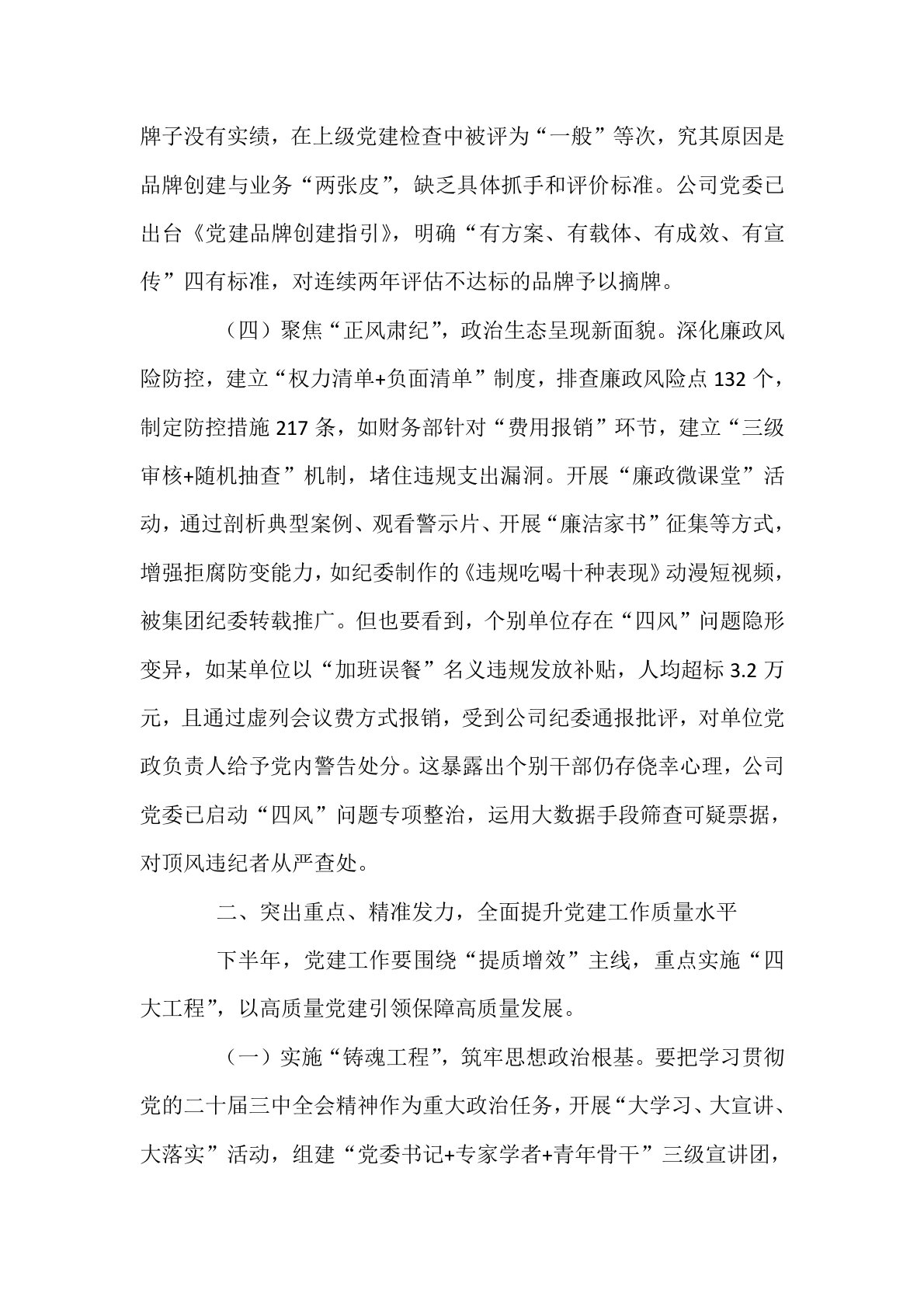 某公司党委书记在2025年度上半年党支部书记(党建)例会上的讲话
