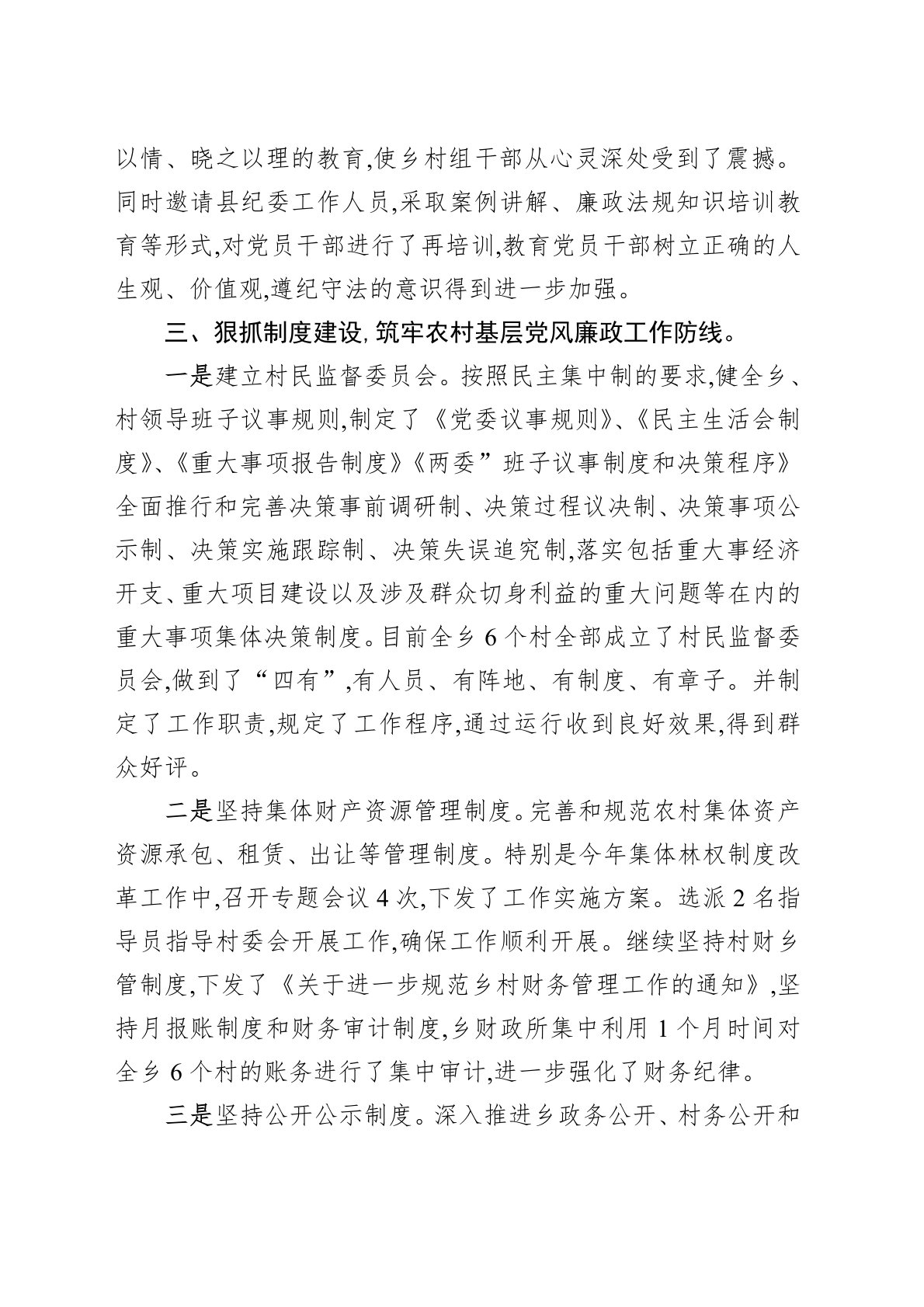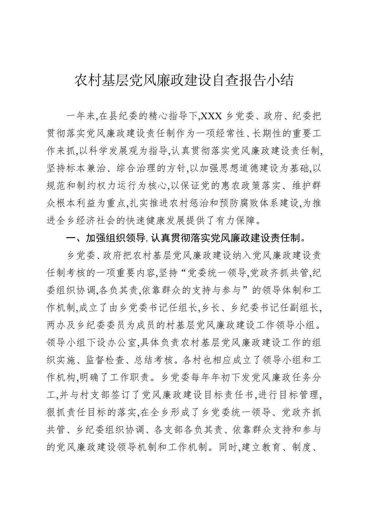 农村基层党风廉政建设自查报告小结