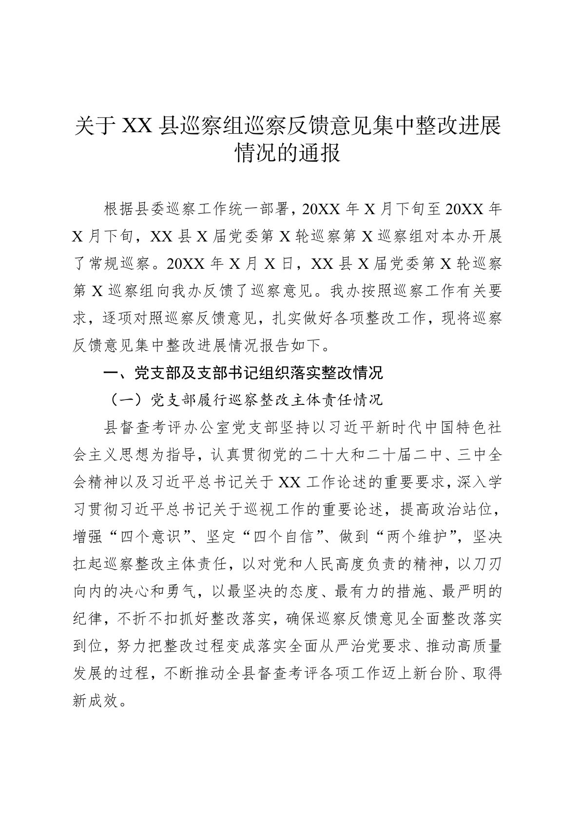 关于XX县巡察组巡察反馈意见集中整改进展情况的通报