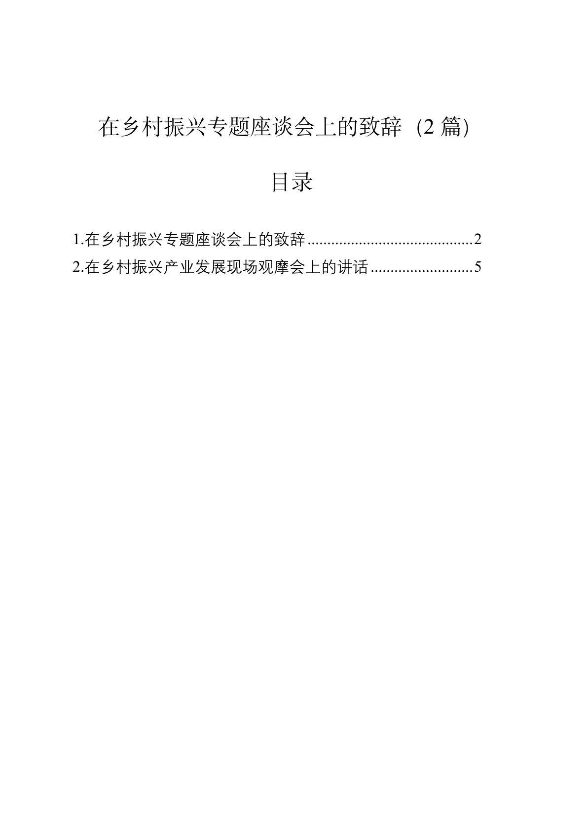 在乡村振兴专题座谈会上的致辞(2篇)