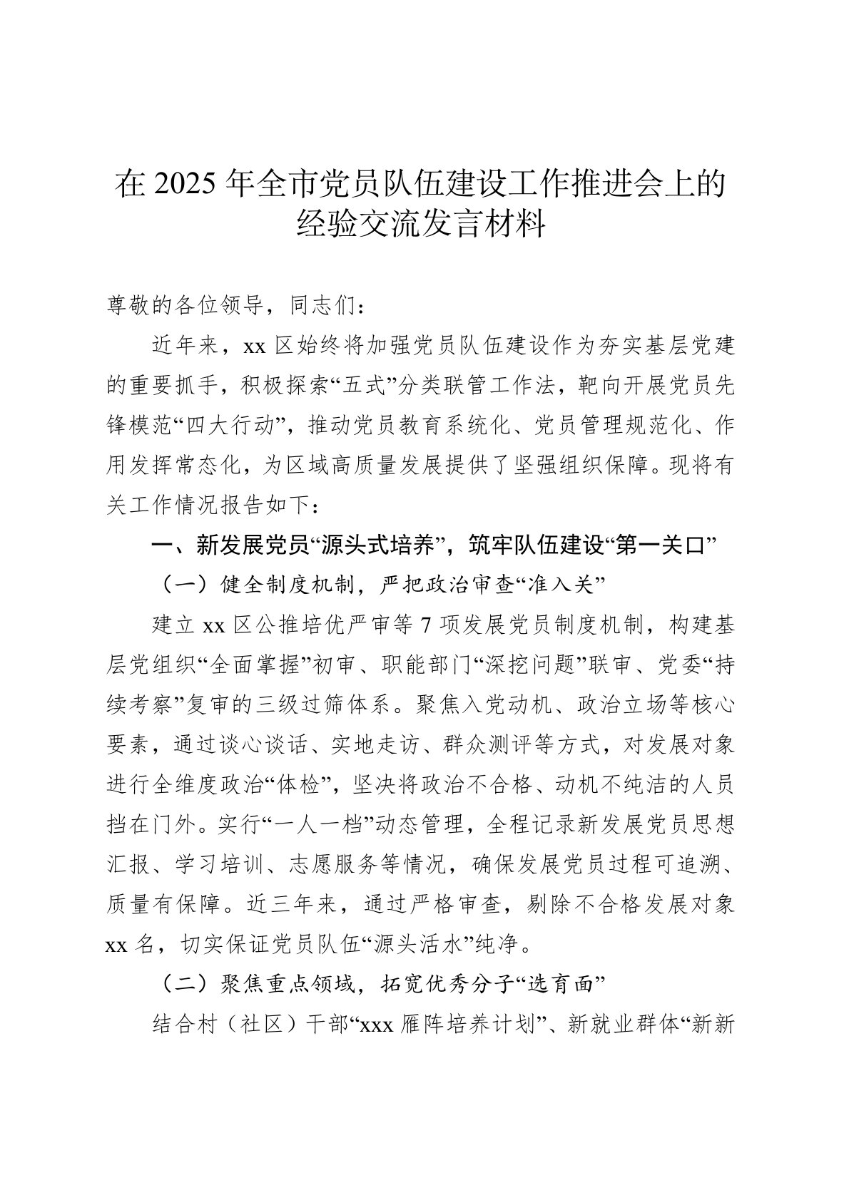 在2025年全市党员队伍建设工作推进会上的经验交流发言材料