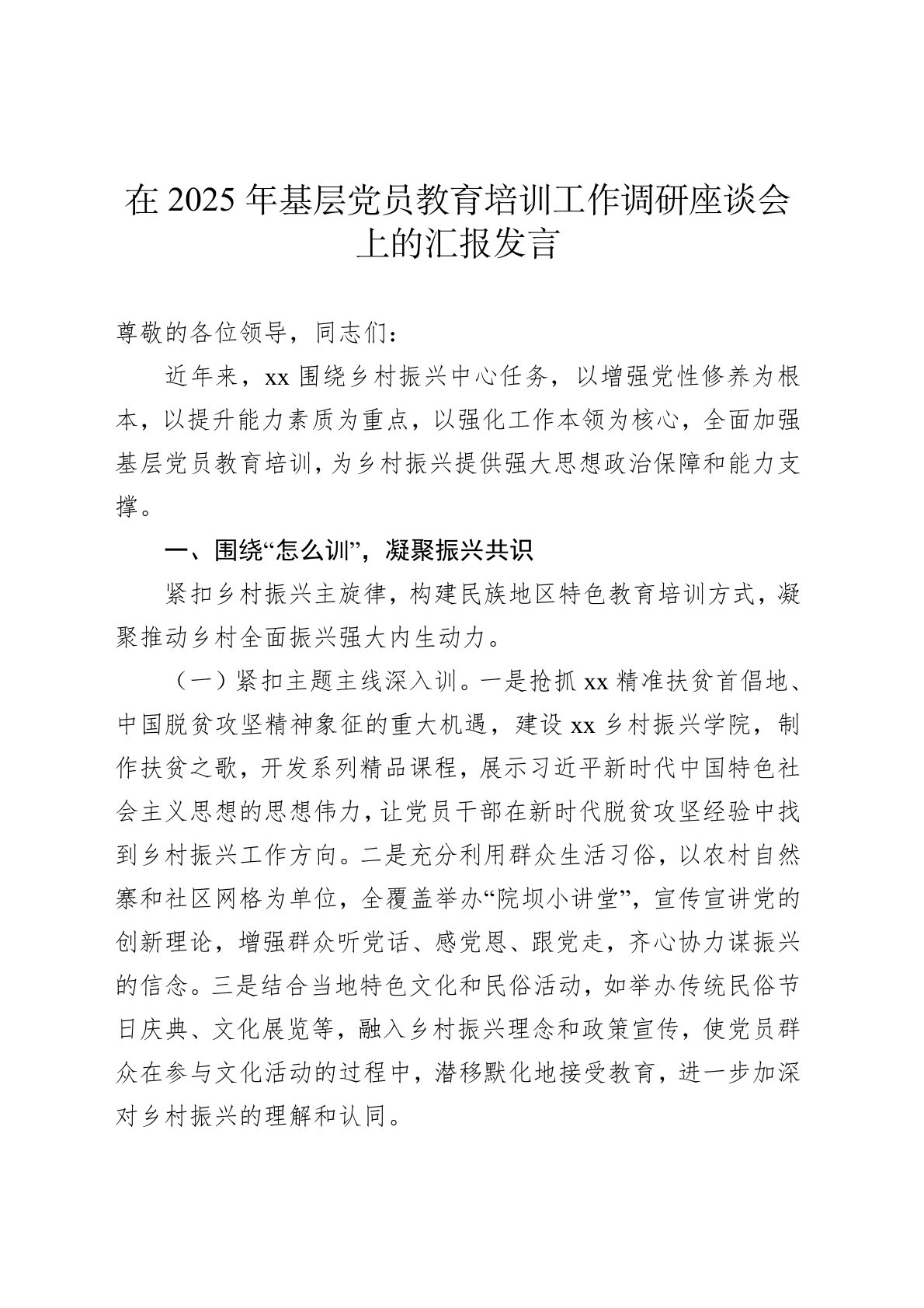 在2025年基层党员教育培训工作调研座谈会上的汇报发言