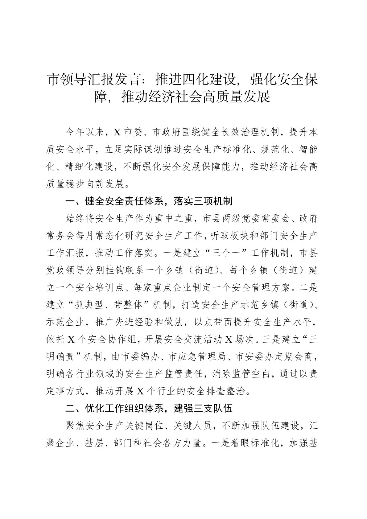 市领导汇报发言:推进四化建设,强化安全保障,推动经济社会高质量发展