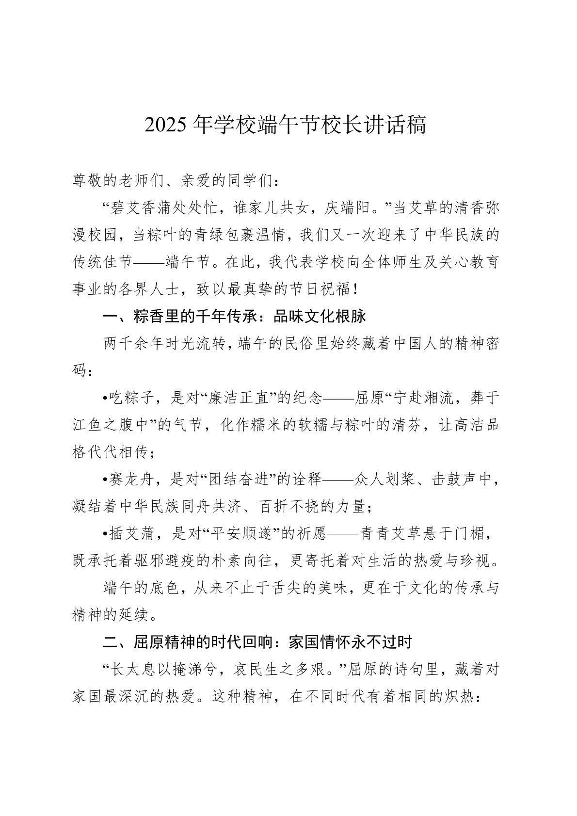 2025年学校端午节校长讲话稿