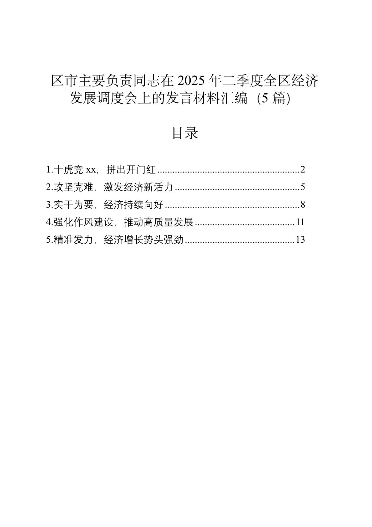 区市主要负责同志在2025年二季度全区经济发展调度会上的发言材料汇编(5篇)