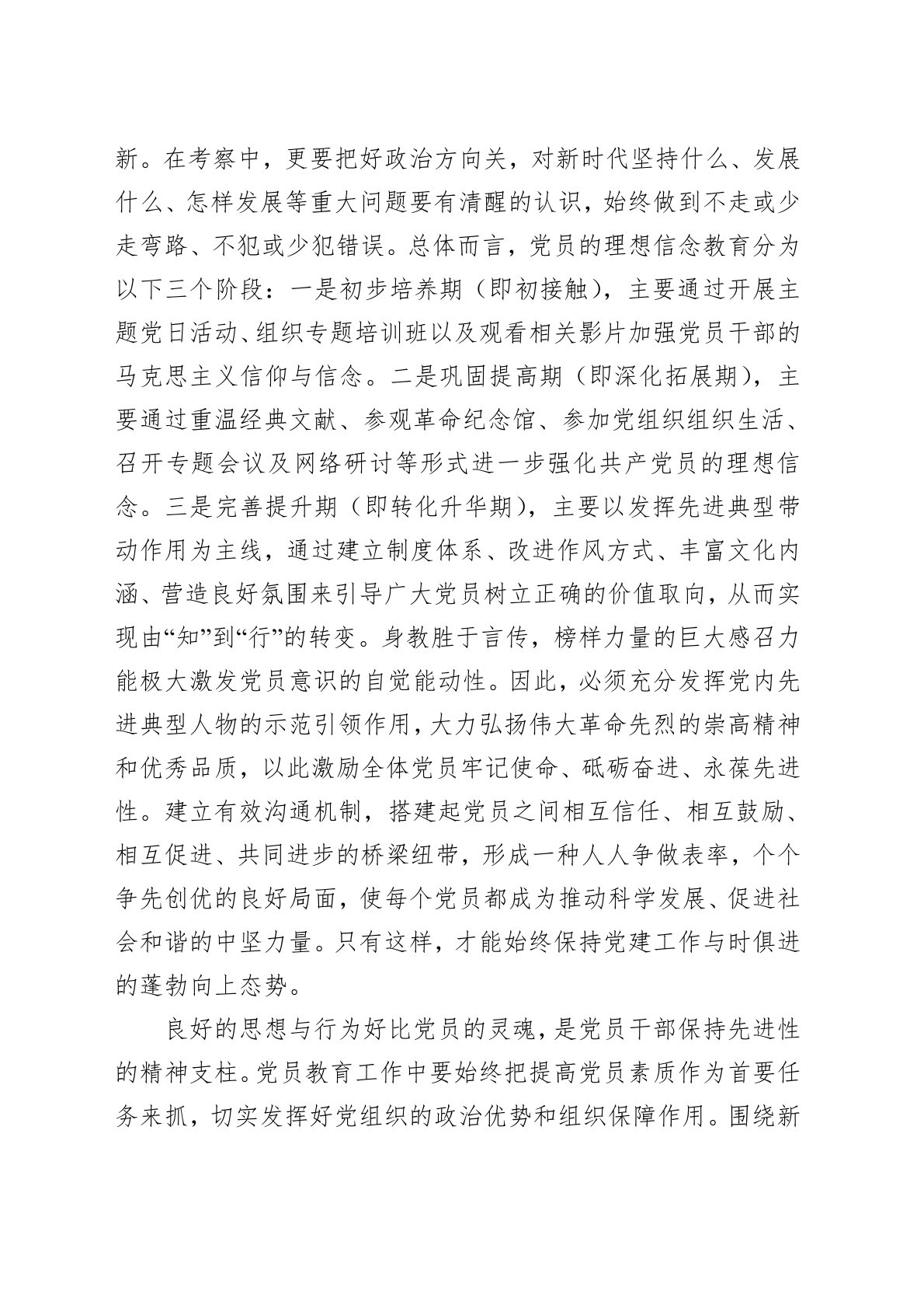 党的二十大全面部署了社会主义现代化建设的跨世纪发展目标和实现该目标的基本途径。在第二个一百年的征途中,要完成这一宏伟任务,必须把物质文明与精神文明结合起来,加强党员队伍建设。以保持党员先进性为核心,从思想上、组织上、作风上全面推进党的建设,保证党的纲领、路线、方针、政策得以贯彻实施。从而确保党的路线方针政策得到贯彻执行,促进改革开放和经济建设持续健康发展。党员队伍建设要坚持以党章规定为根本遵循,把党员标准贯穿于党内各项工作之中,从组织保障、制度体系等方面加强自身修养。在思想方面,应坚定理想信念,强化政治意识,筑牢精神之基。思想是党建工作的灵魂,行为是党建工作的载体,两者相辅相成、相互促进。要通...