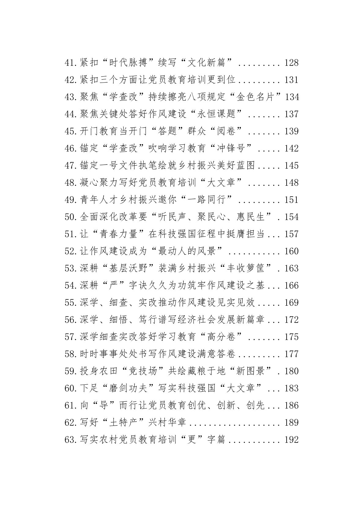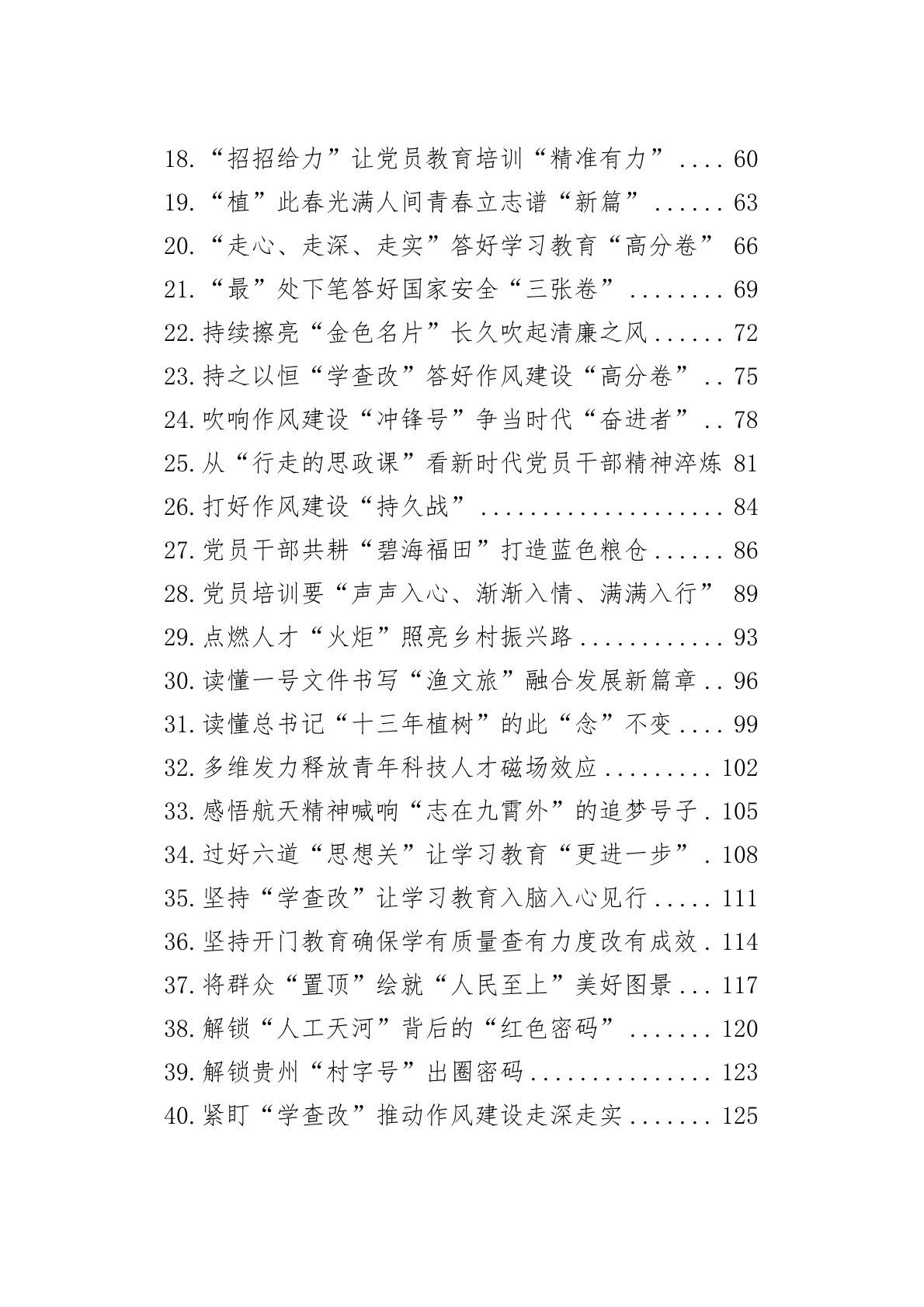 2.“常抓不懈”打好作风建设“持久战”103.“耕土、育芽、润叶”绘就乡村振兴新图景134.“规划”领航:奏响乡村全面振兴“春之曲”165.“扩绿、兴绿、护绿”共绘绿美生态新篇章196.“清”心明志践初心“明”纪笃行扬清风227.“全链条”发力推进作风建设258.“深学、细查、实改”书写学习教育“更”字篇289.“时刻在线”念好党员教育培训的“兼”字诀3110.“时时、处处、事事”推动学习教育往“里”走3711.“守护、传承、创新”谱写文化强国新篇章4012.“学查改”贯通发力推动作风建设常态长效4313.“一步一个脚印”扎实推进科技强国建设4614.“一篙不松”将学习教育向深处推进4815....