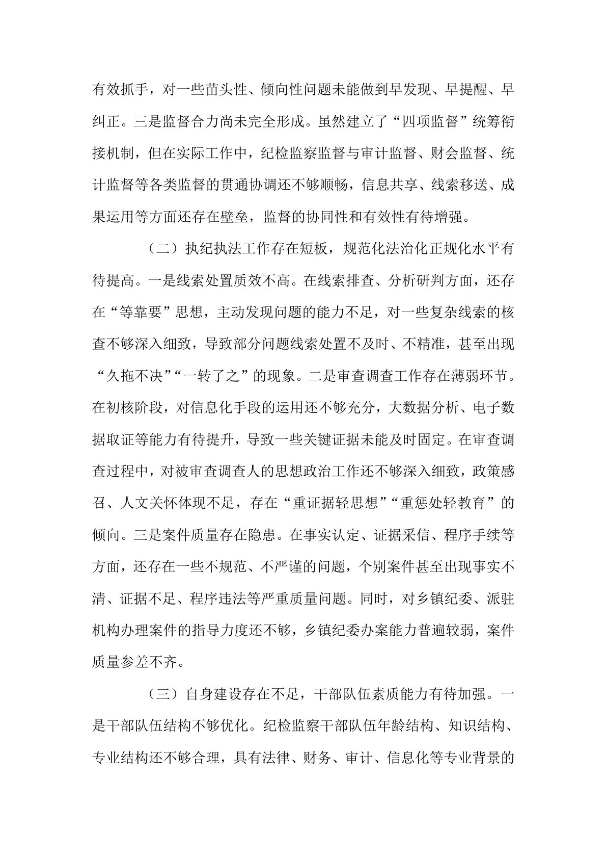 县纪委监委关于监督执纪执法工作短板问题汇报