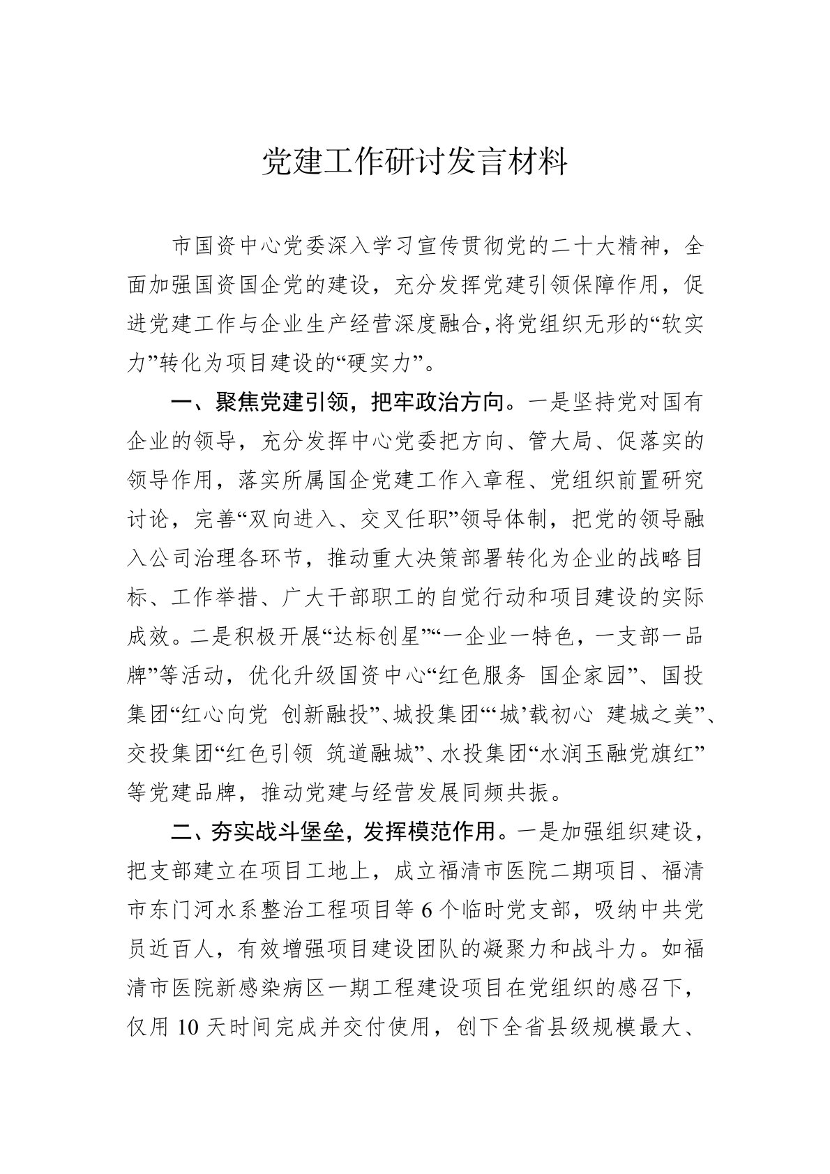 党建工作研讨发言材料