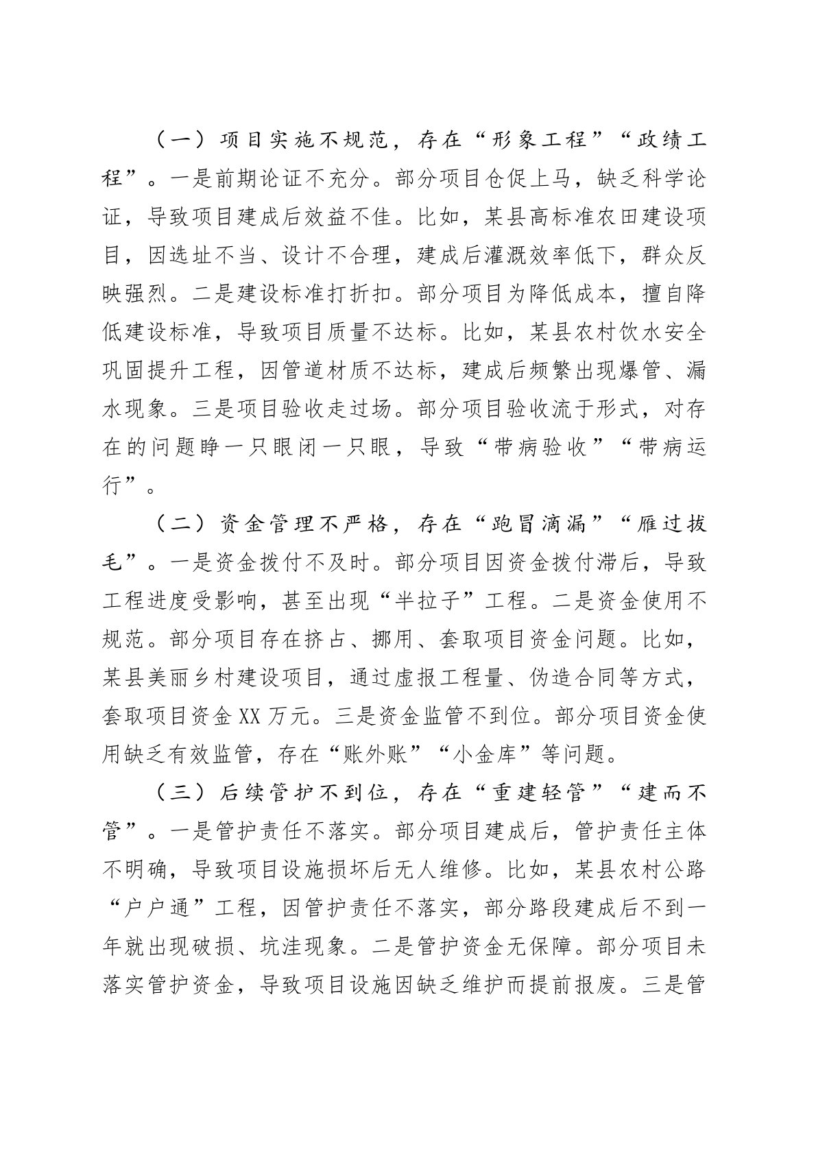 市长在全市涉农民生重点项目突出问题排查整改推进会议上的讲话