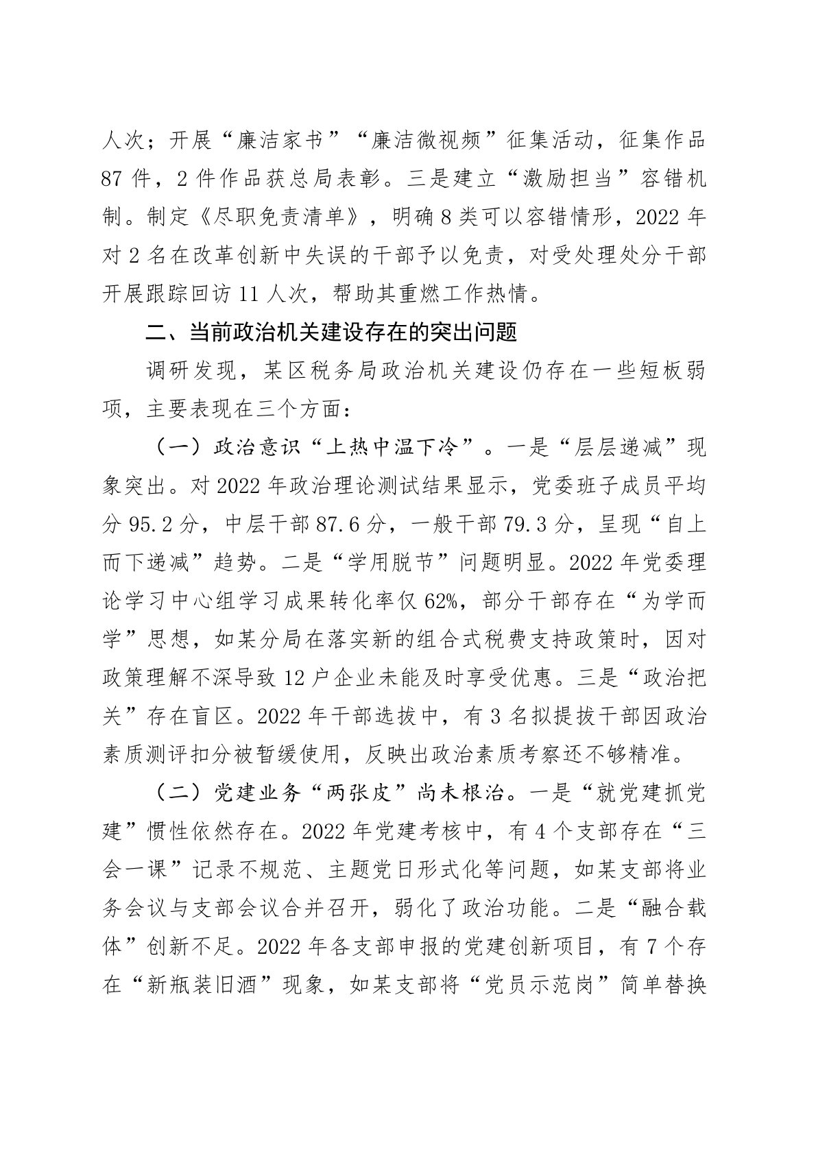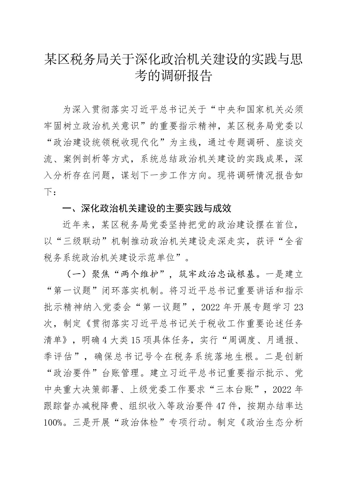 某区税务局关于深化政治机关建设的实践与思考的调研报告