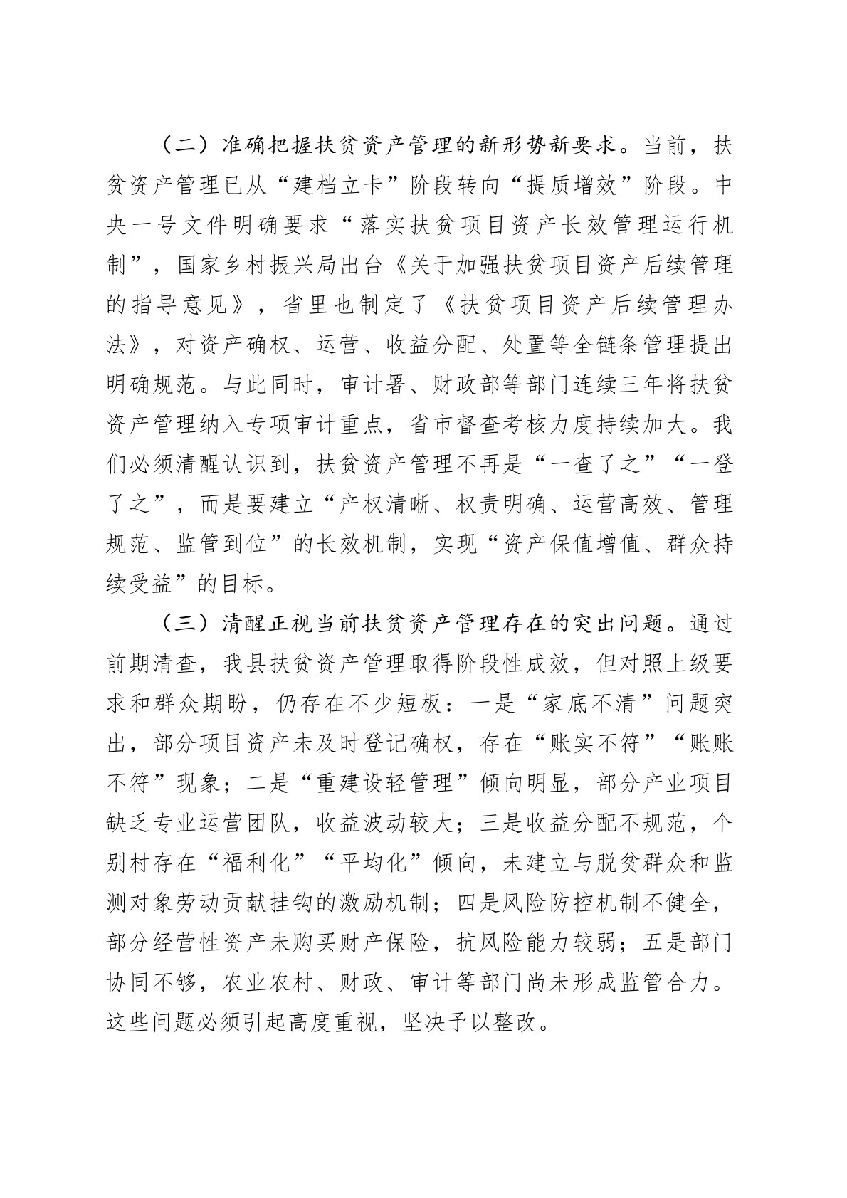 某县长在扶贫资产管理工作推进会上的讲话