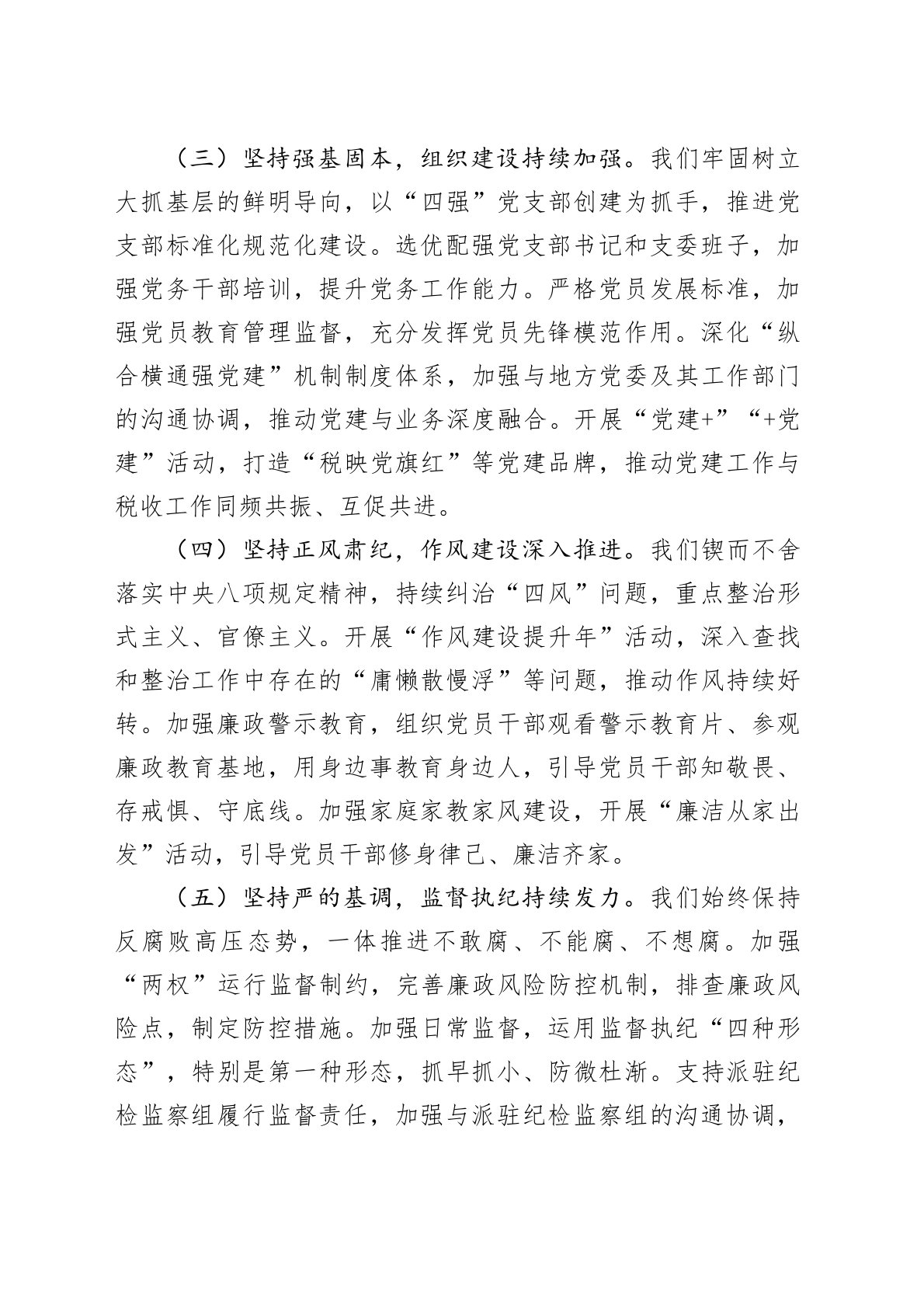 县税务局党组书记在2025年上半年全面从严治党、党风廉政建设和反腐败工作专题分析会上的讲话今天,我们召开2025年上半年全面从严治党、党风廉政建设和反腐败工作专题分析会,主要任务是:深入学习贯彻习近平总书记关于党的自我革命的重要思想,全面贯彻落实二十届中央纪委四次全会、总局、省局、市局全面从严治党工作会议精神,总结上半年工作,分析当前形势,部署下半年任务,推动我局全面从严治党、党风廉政建设和反腐败斗争向纵深发展,为高质量推进中国式现代化税务实践提供坚强保障。刚才,XX同志代表局党委作了工作报告,总结成绩全面客观,分析问题深刻到位,部署任务重点突出,我完全赞同。下面,我讲三个方面意见。一、上半年...
