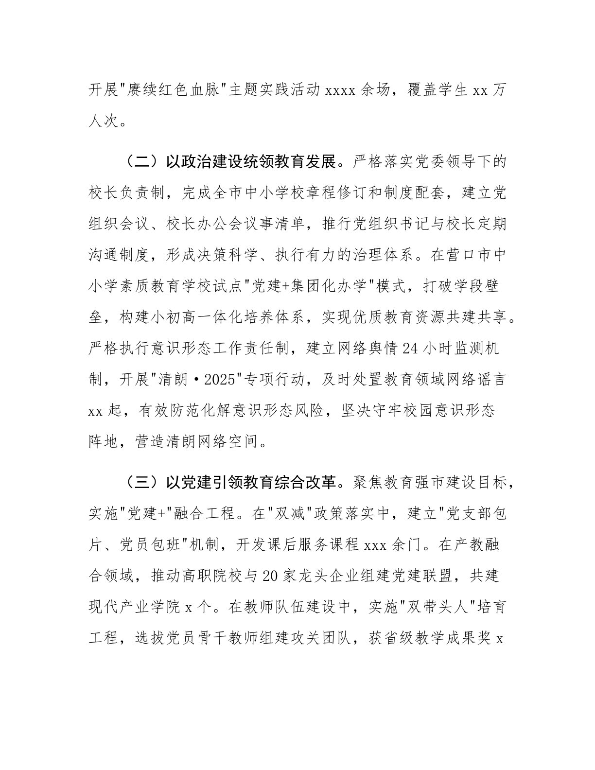 市教育局党组在2025年市教育系统党工委党的建设工作领导小组第二次会议上的讲话