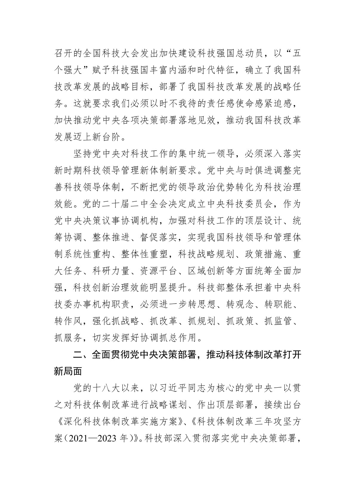 坚持党中央对科技工作的集中统一领导进一步深化科技体制改革