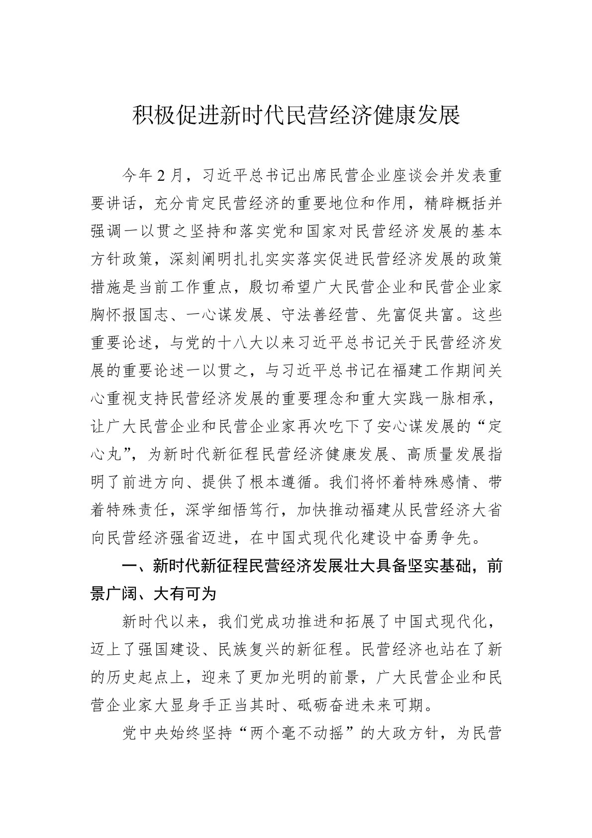 积极促进新时代民营经济健康发展