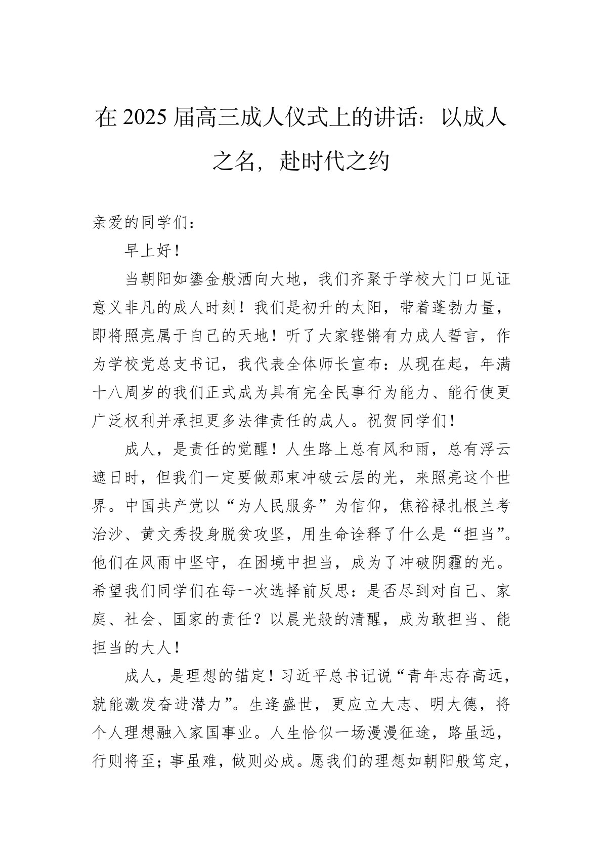 在2025届高三成人仪式上的讲话:以成人之名,赴时代之约