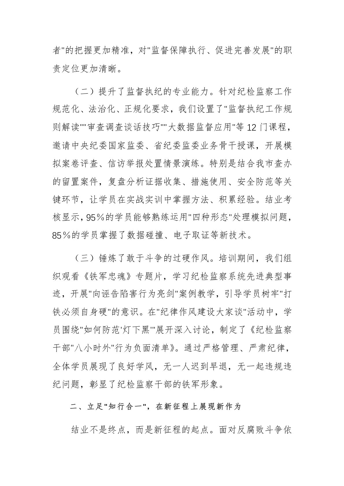 在2025年纪检监察干部培训班结业仪式上的发言范文