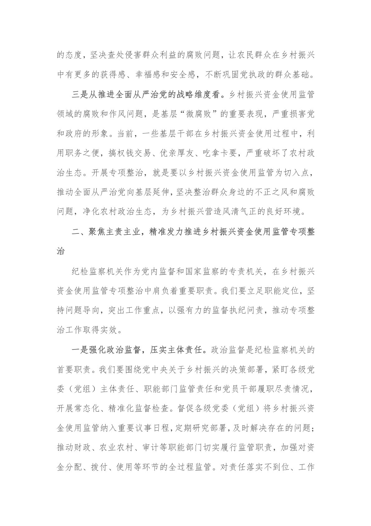 2025市纪委书记在全市乡村振兴资金使用监管突出问题专项整治推进会上的讲话2篇
