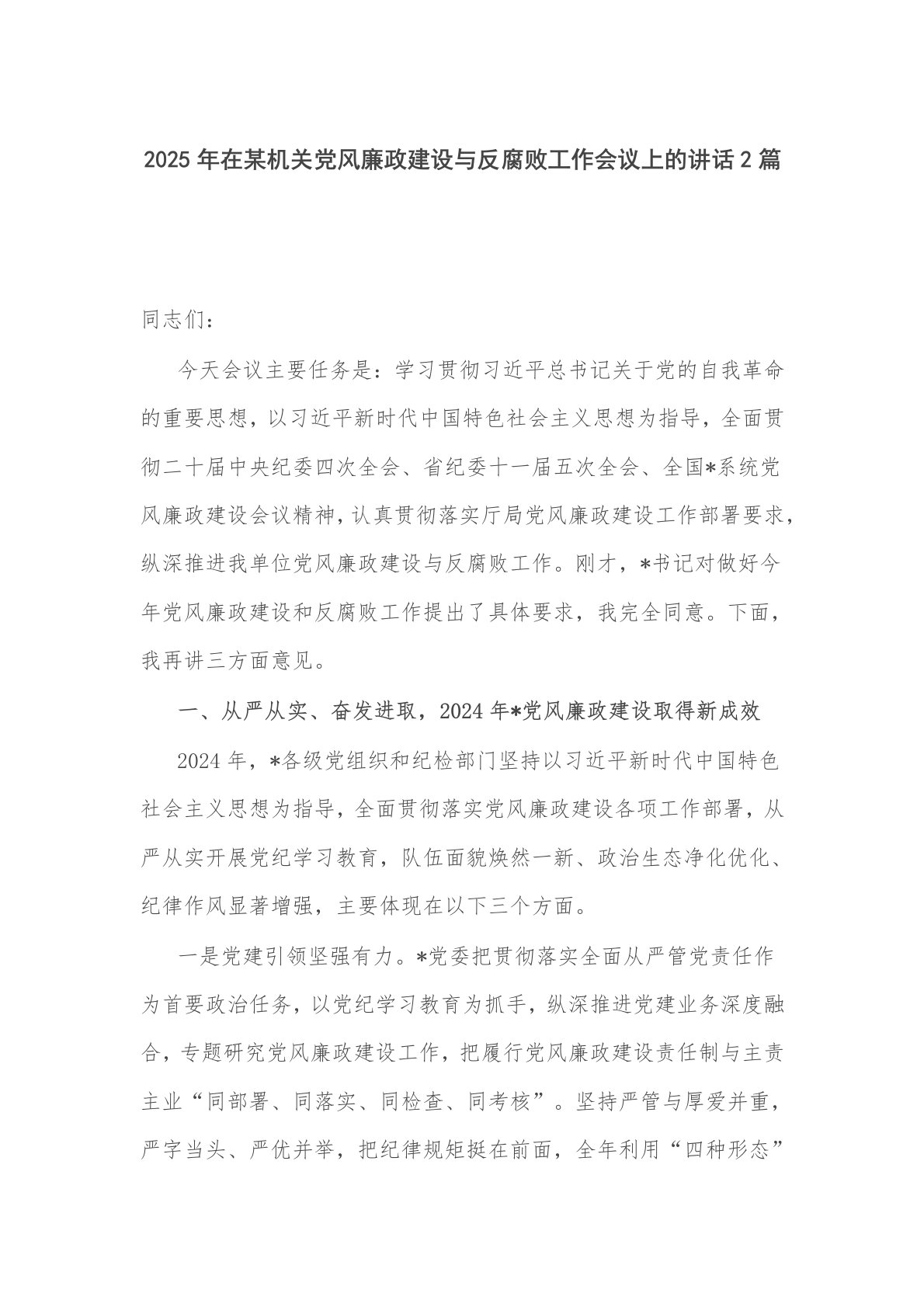 2025年在某机关党风廉政建设与反腐败工作会议上的讲话2篇