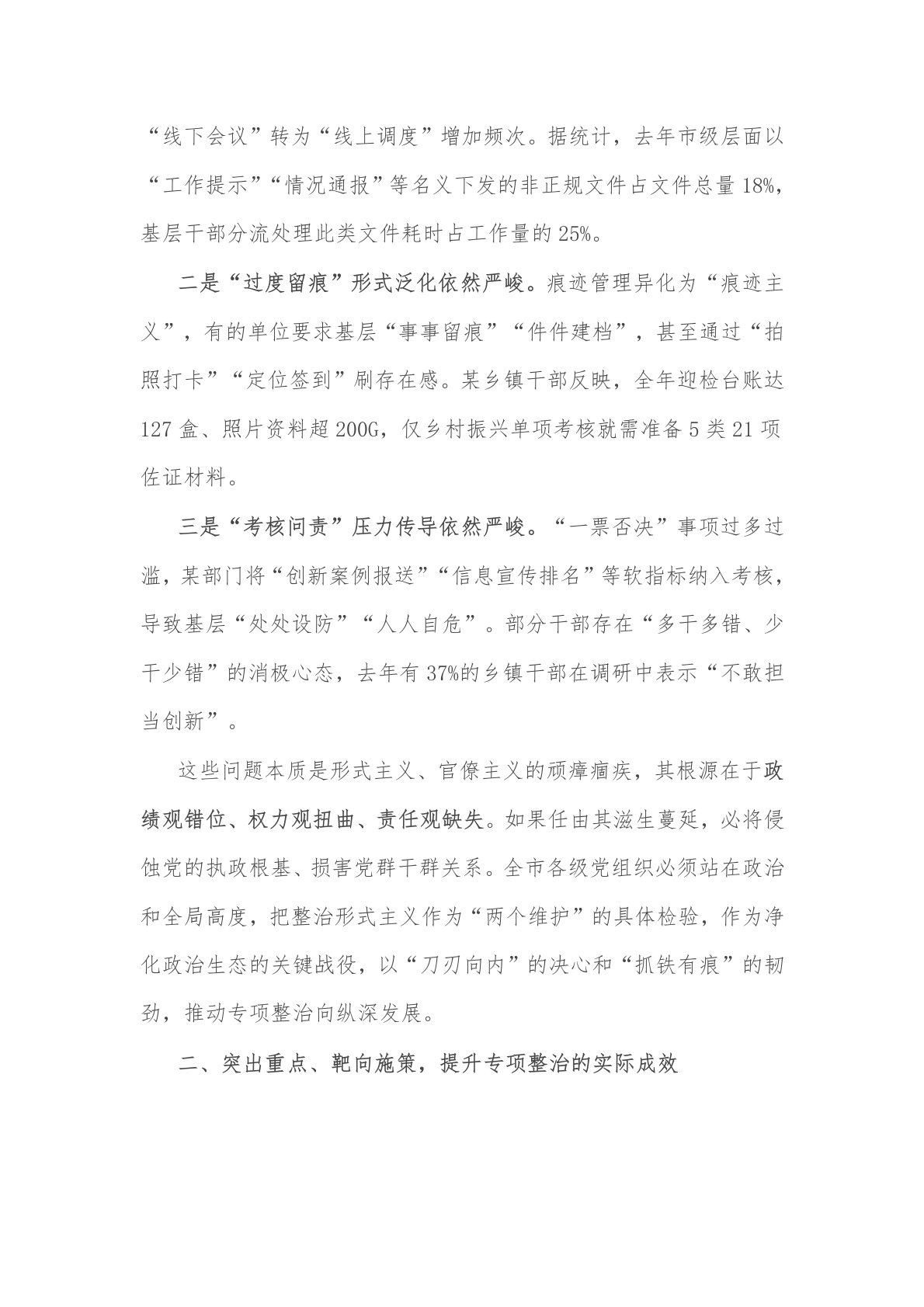 2025年某领导一季度市级层面整治形式主义为基层减负专项工作机制会议上的讲话2篇