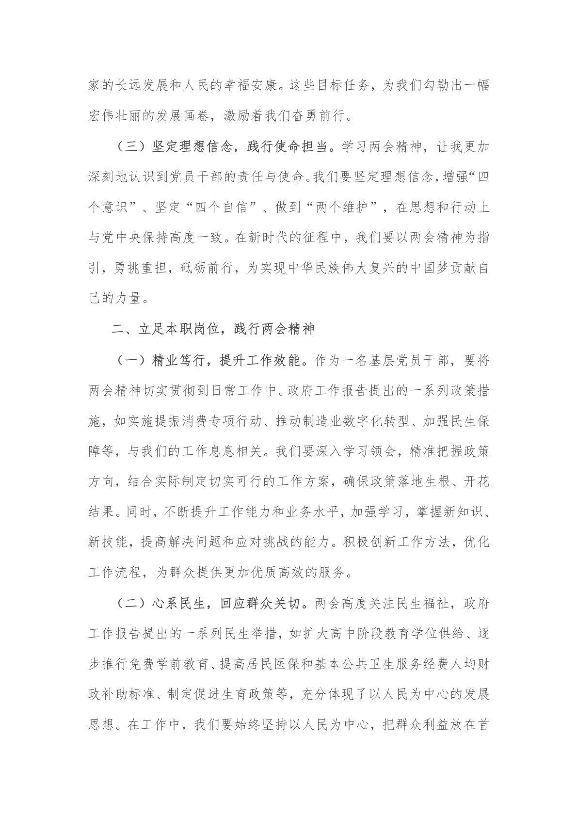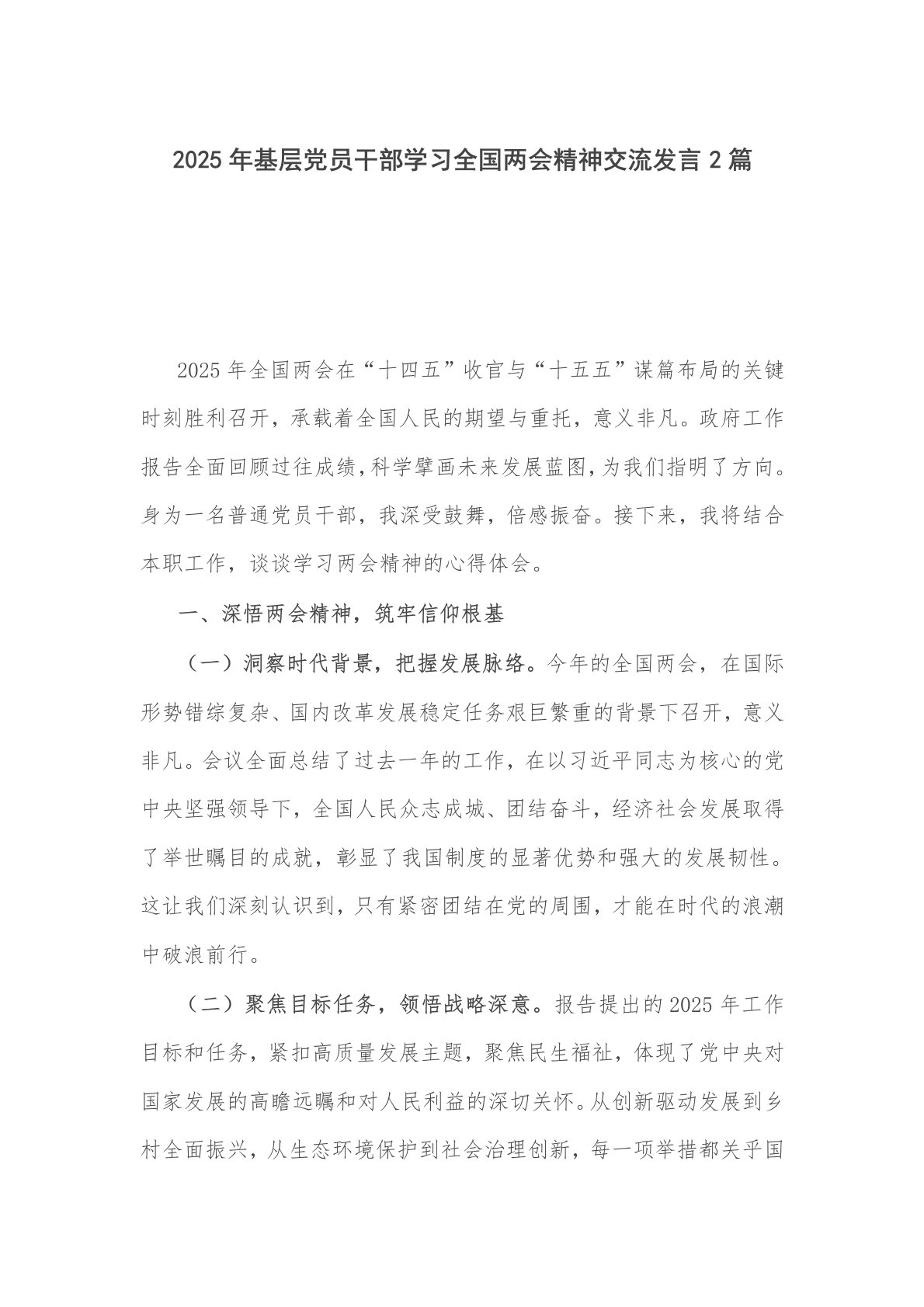 2025年基层党员干部学习全国两会精神交流发言2篇