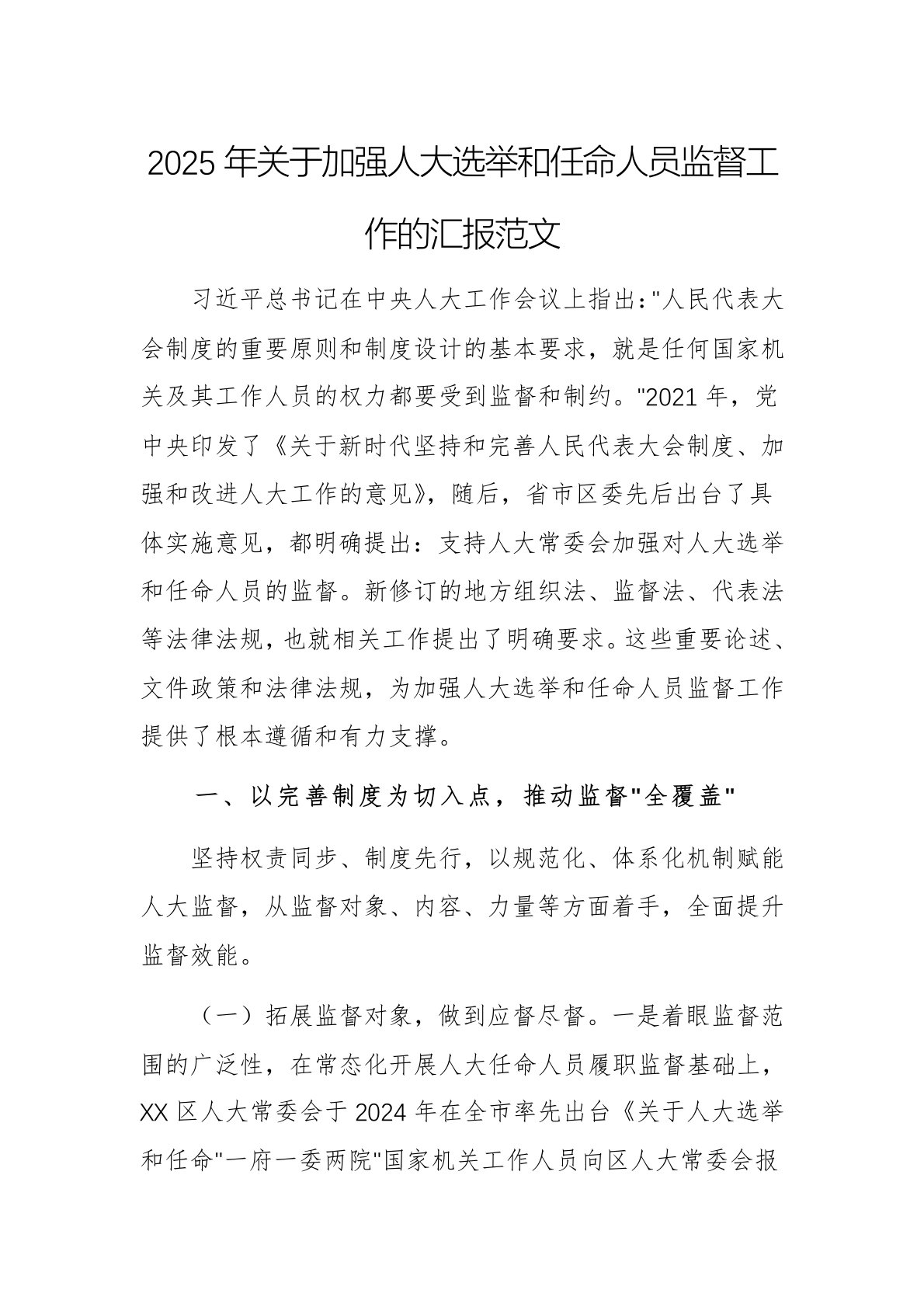 2025年关于加强人大选举和任命人员监督工作的汇报范文