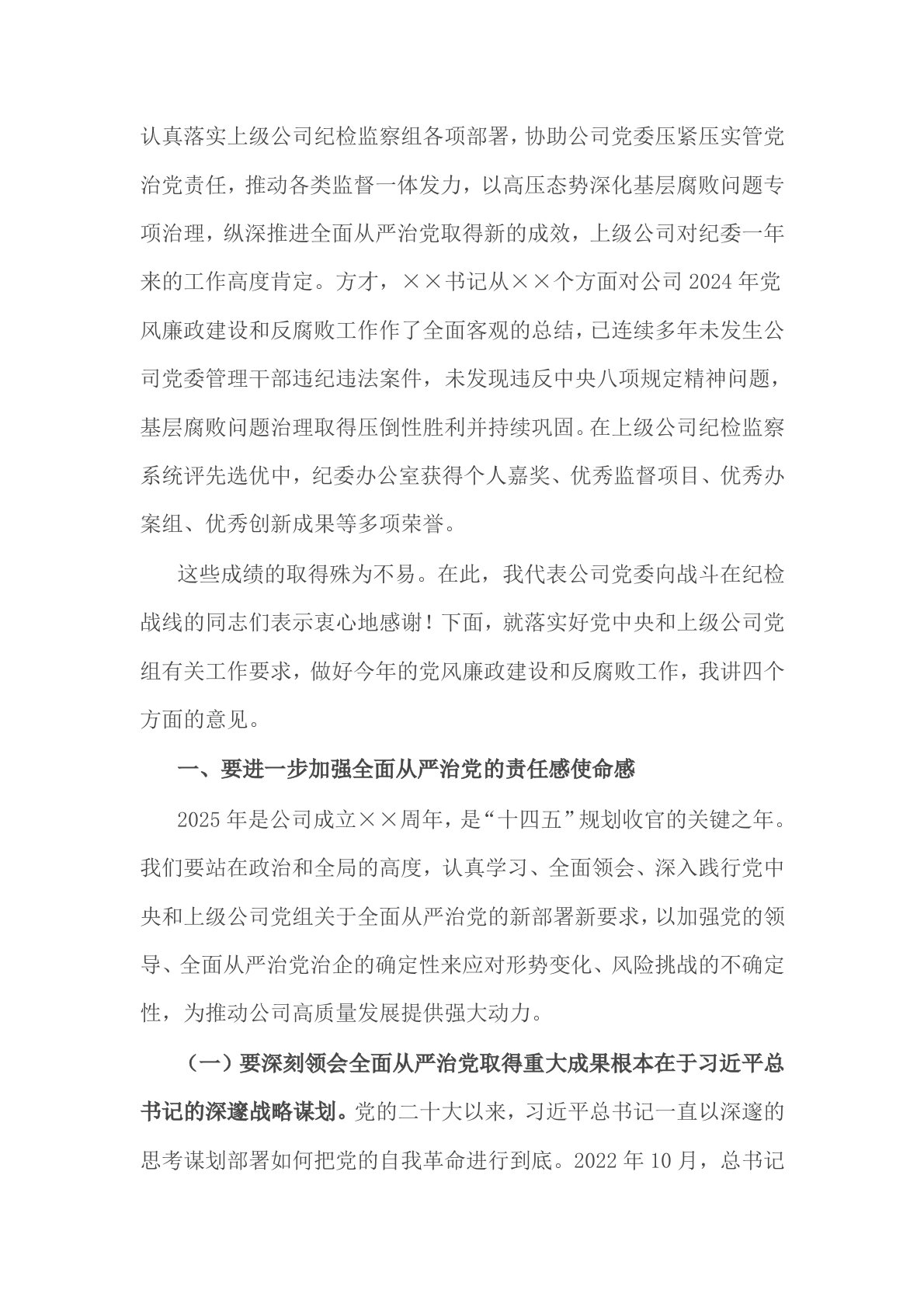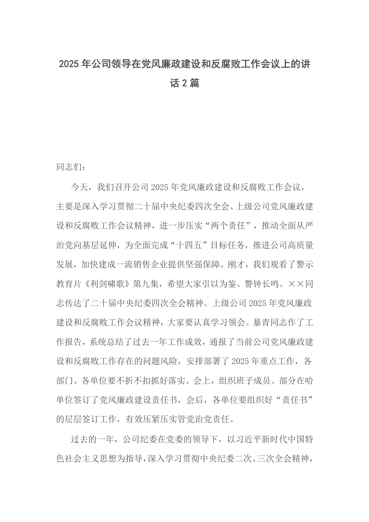 2025年公司领导在党风廉政建设和反腐败工作会议上的讲话2篇