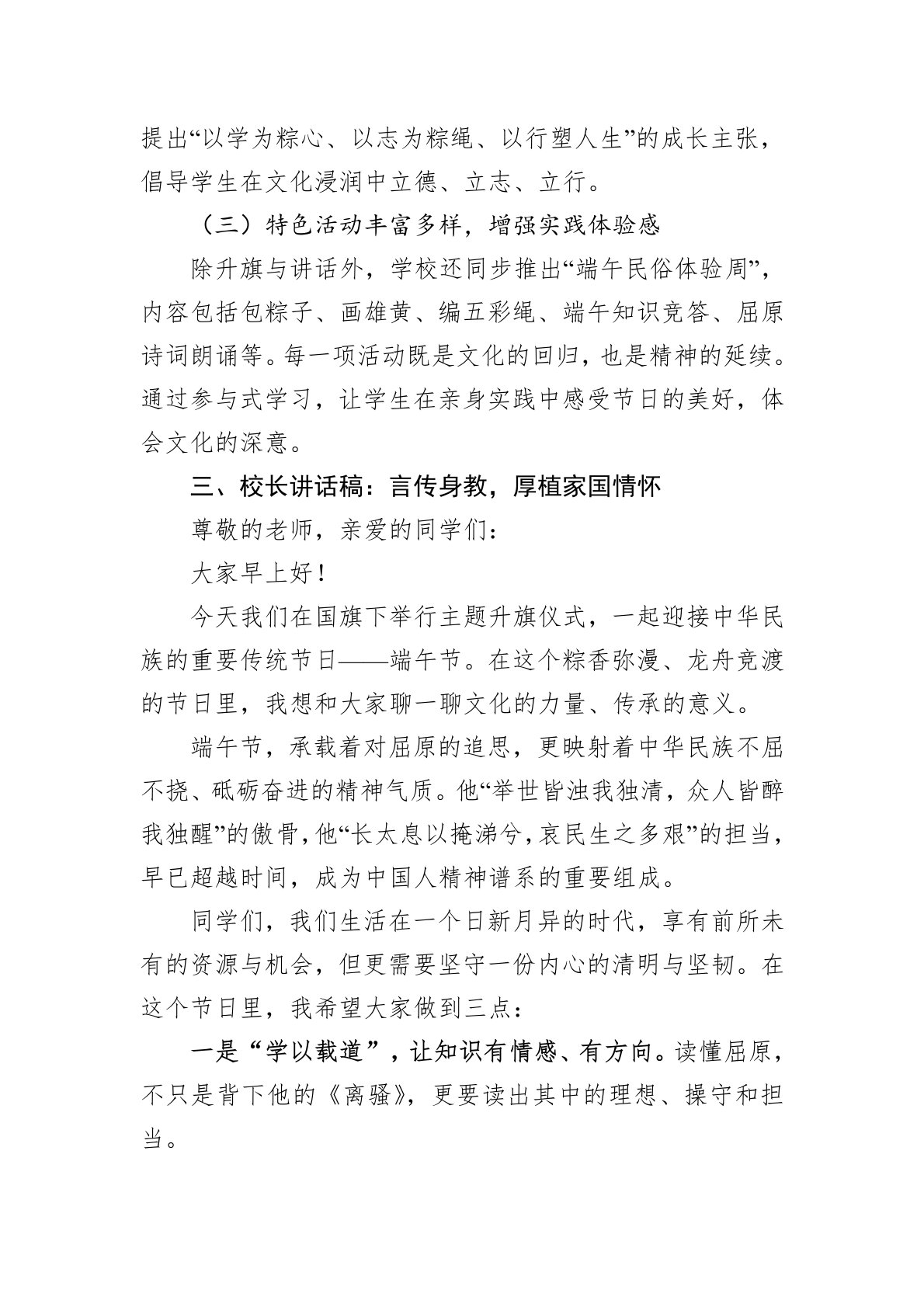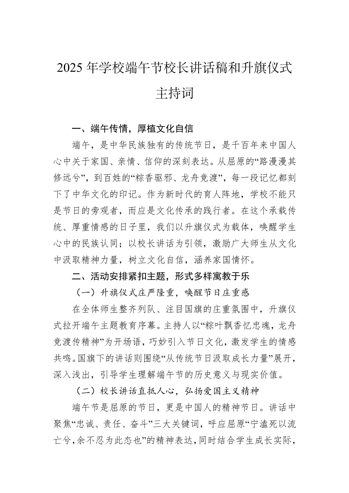 2025年学校端午节校长讲话稿和升旗仪式主持词