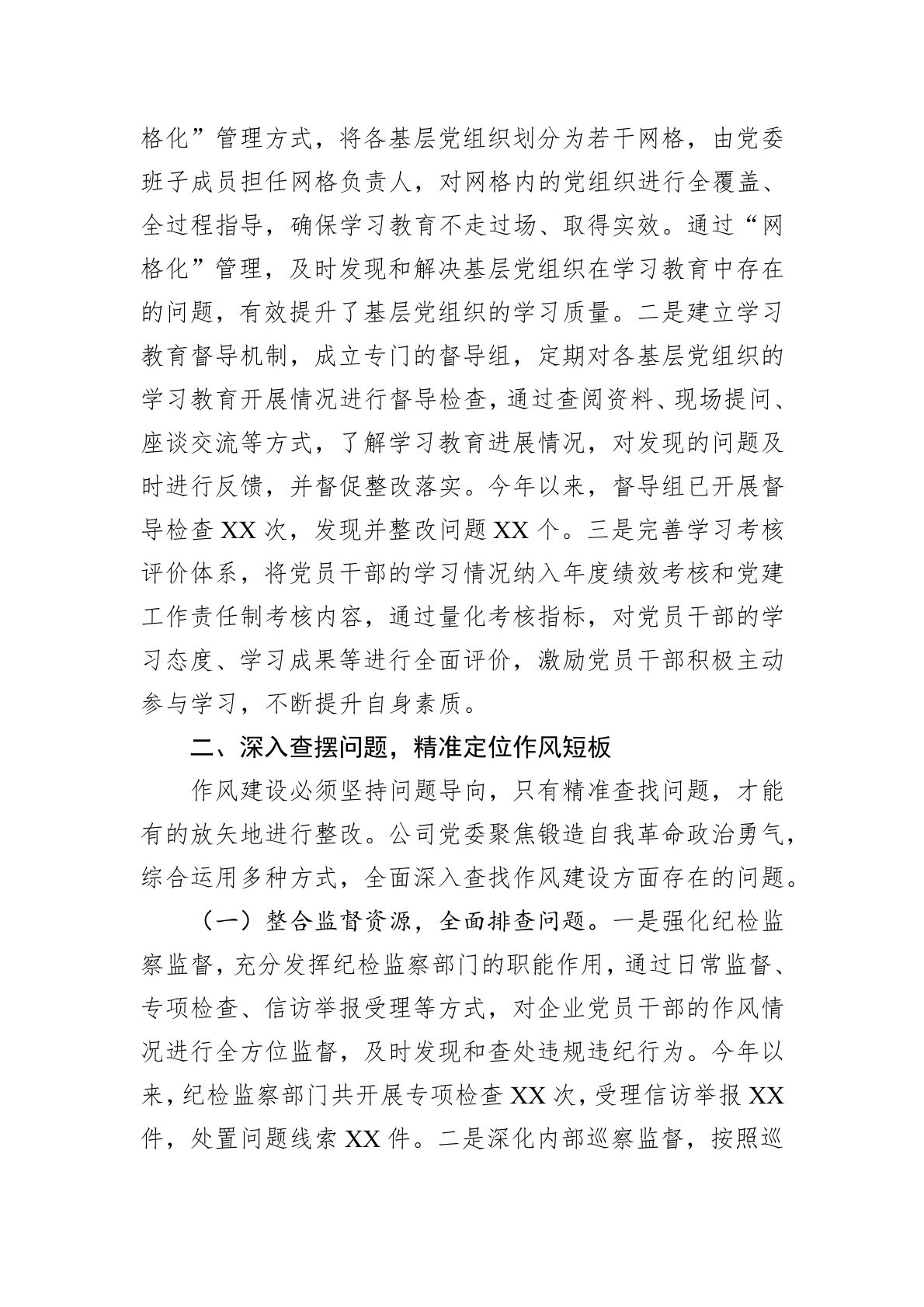 尊敬的各位领导、同志们:近年来,公司党委始终坚持以改革精神为动力,以严的标准为准则,积极探索作风建设的新路径、新方法,努力打造一支政治过硬、作风优良、能力突出的党员干部队伍,为企业发展注入了强大动力。现将相关经验汇报如下:一、强化思想引领,筑牢作风建设根基思想是行动的先导,强化思想引领是作风建设的首要任务。我们深刻认识到,只有让党员干部在思想深处正本清源、固本培元,才能从根本上推动作风持续向好。为此,我们采取了一系列有力举措,切实加强党员干部的思想教育。(一)丰富学习载体,拓宽理论学习广度。一是充分利用“干部大讲堂”这一平台,定期邀请专家学者、行业精英进行授课,内容涵盖党的理论、政策法规、业务...