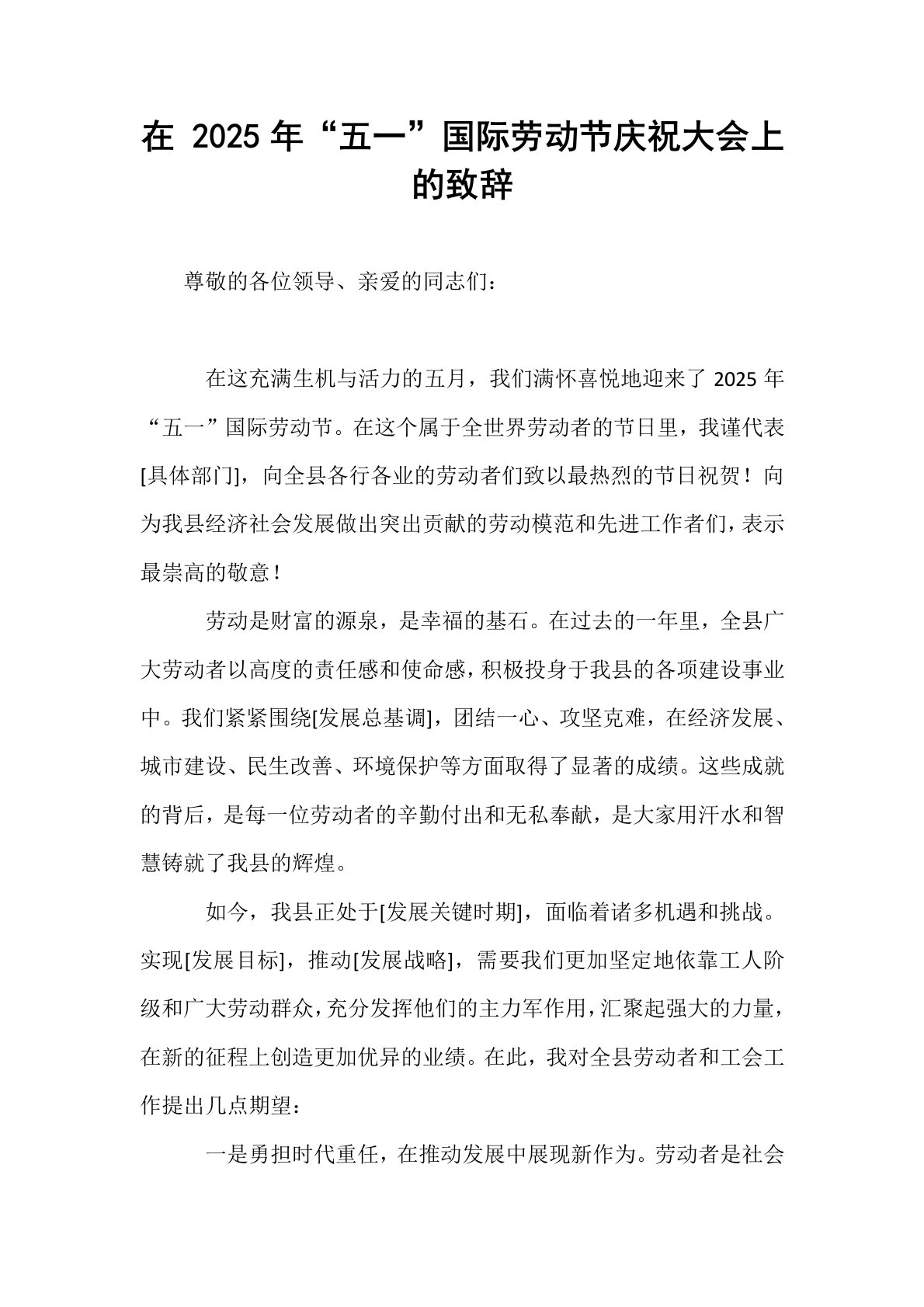 在 2025年“五一”国际劳动节庆祝大会上的致辞