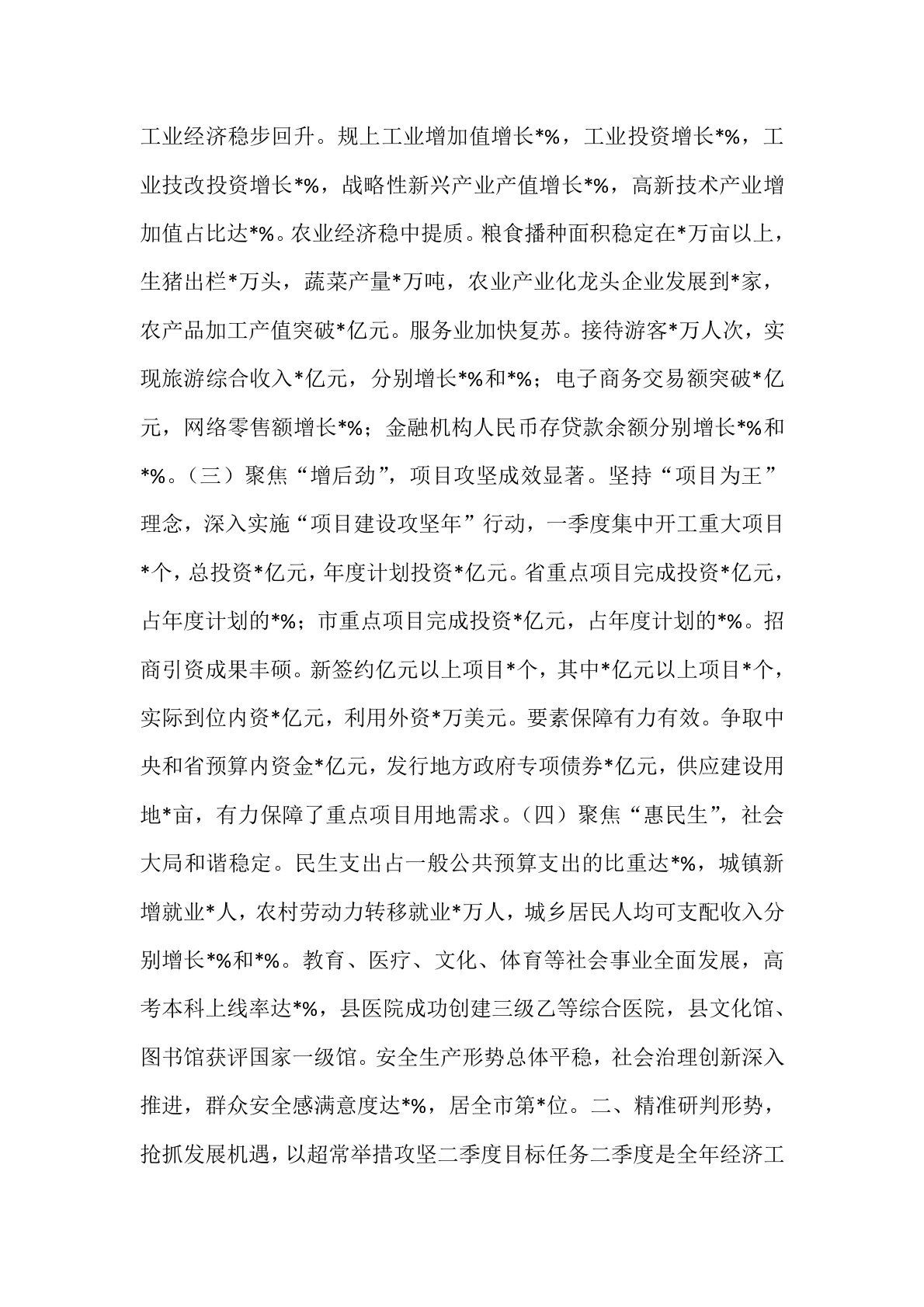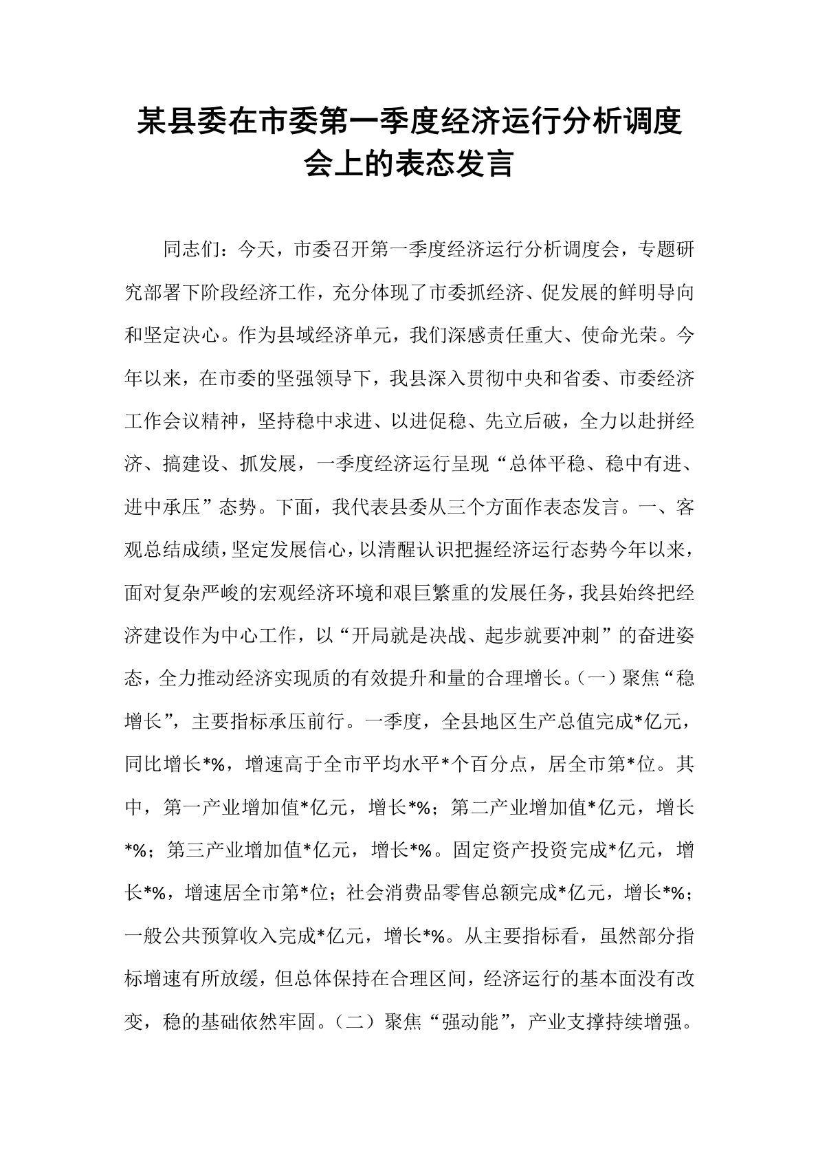 某县委在市委第一季度经济运行分析调度会上的表态发言