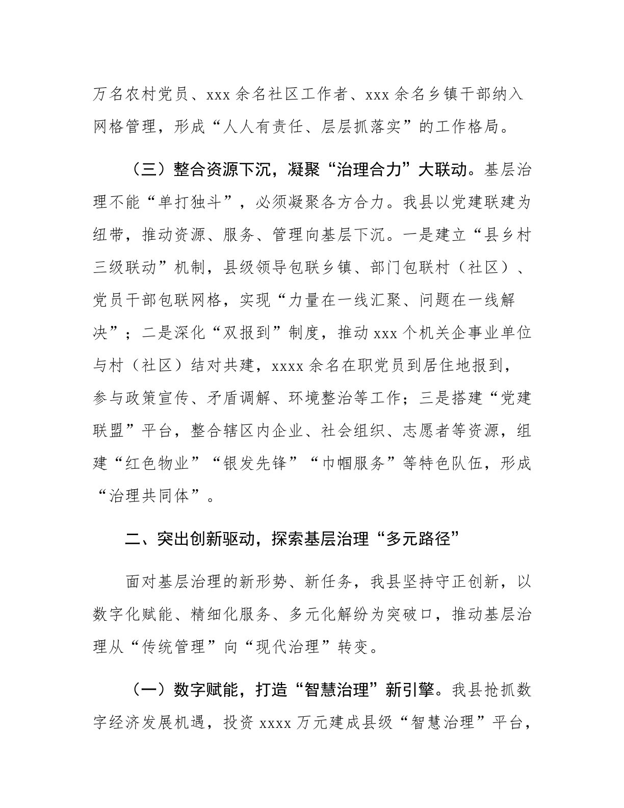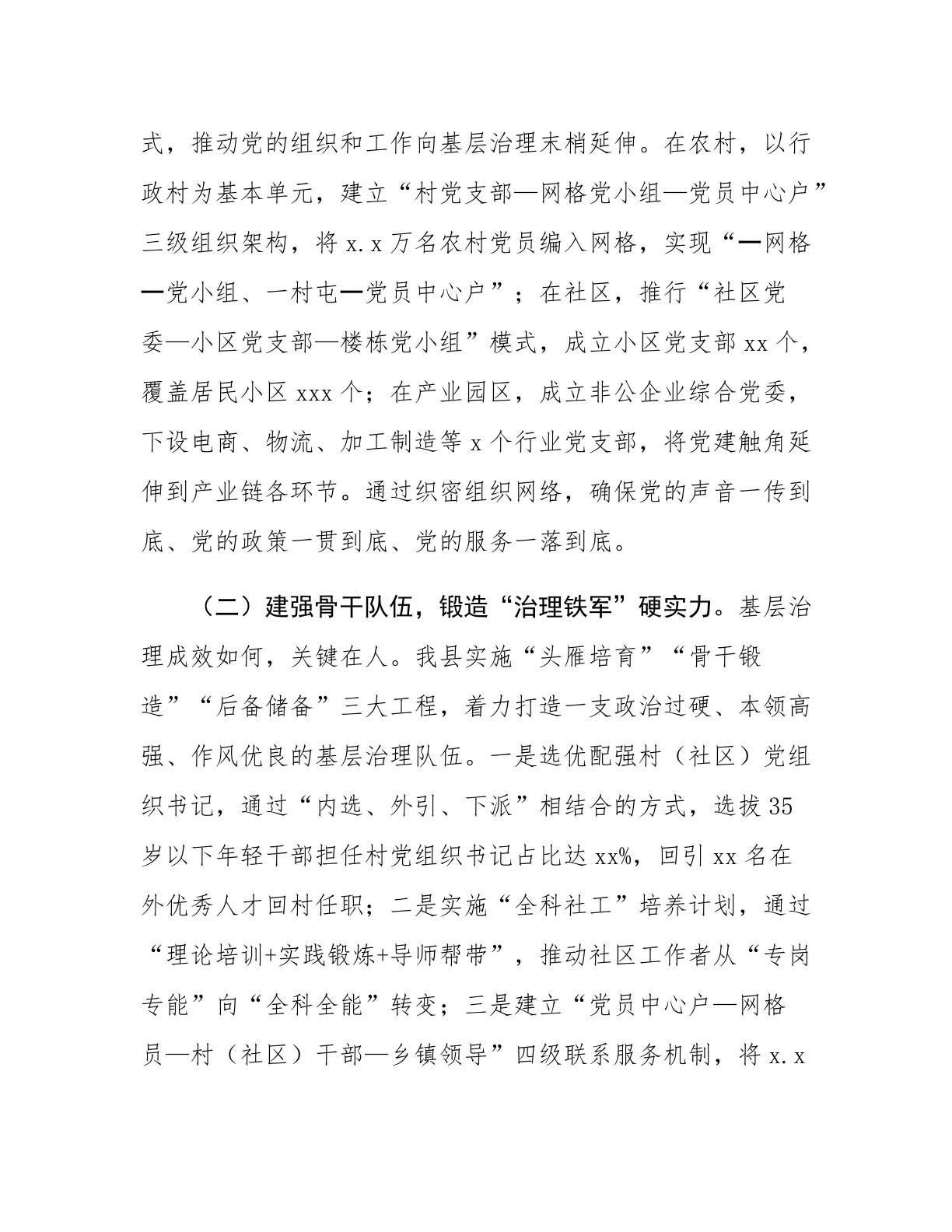 县委书记在2025年全市党建引领基层治理创新经验交流会上的发言