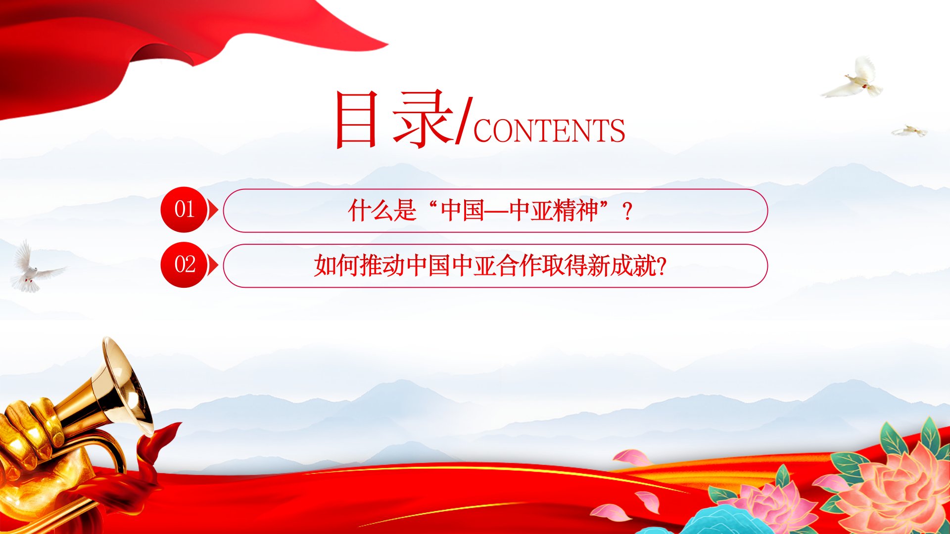 标题:弘扬“中国—中亚精神”推动地区合作高质量发展党课PPT课件