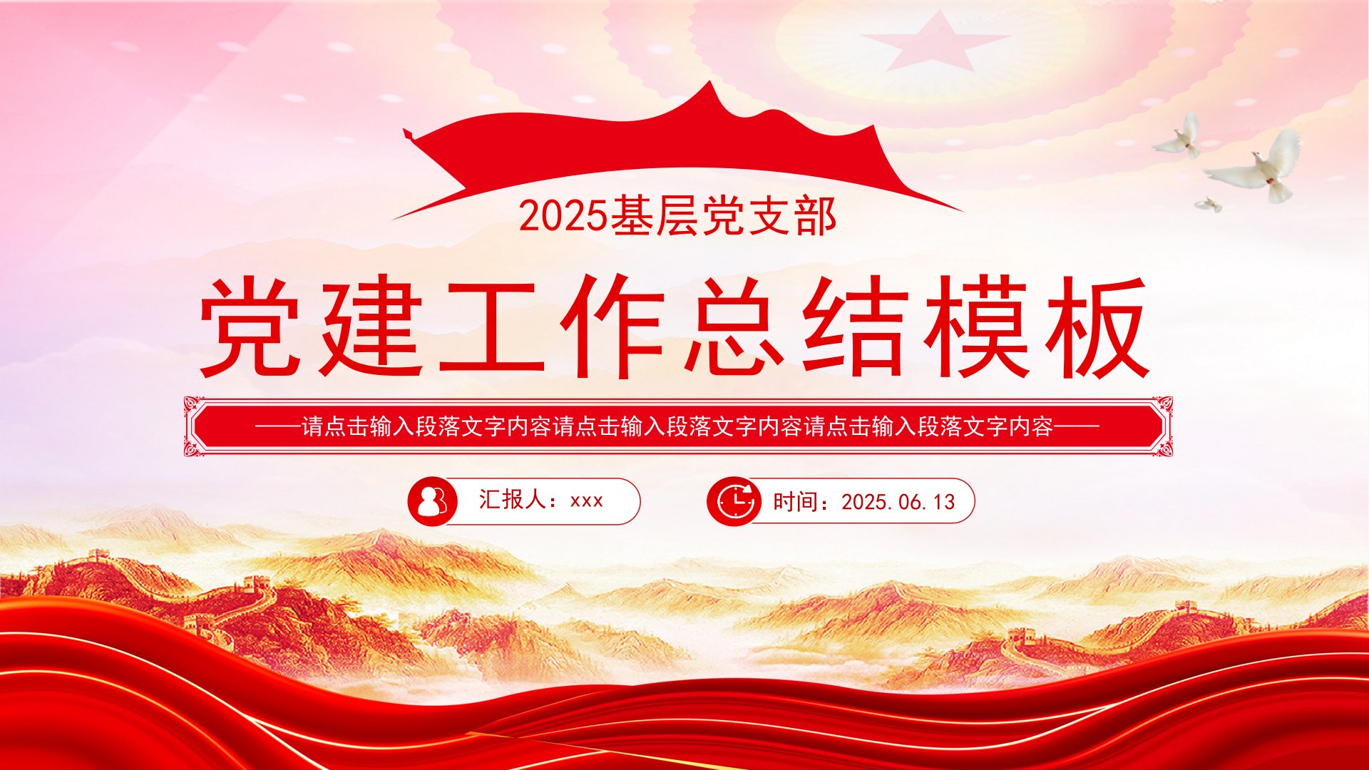 标题:党建工作总结工作述职汇报PPT模板
