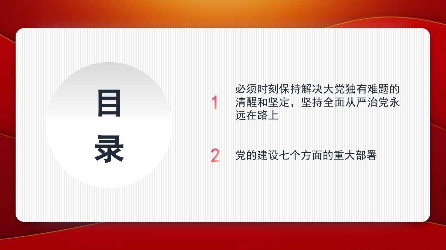 标题:党课讲稿 PPT:治党赶考路 从严再出发——学好用好习近平总书记关于党的建设的重要思想PPT