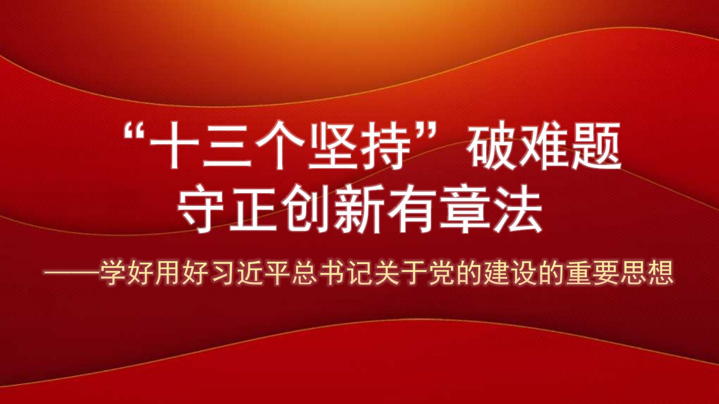 标题:党课讲稿 PPT:“十三个坚持”破难题 守正创新有章法——学好用好习近平总书记关于党的建设的重要思想PPT