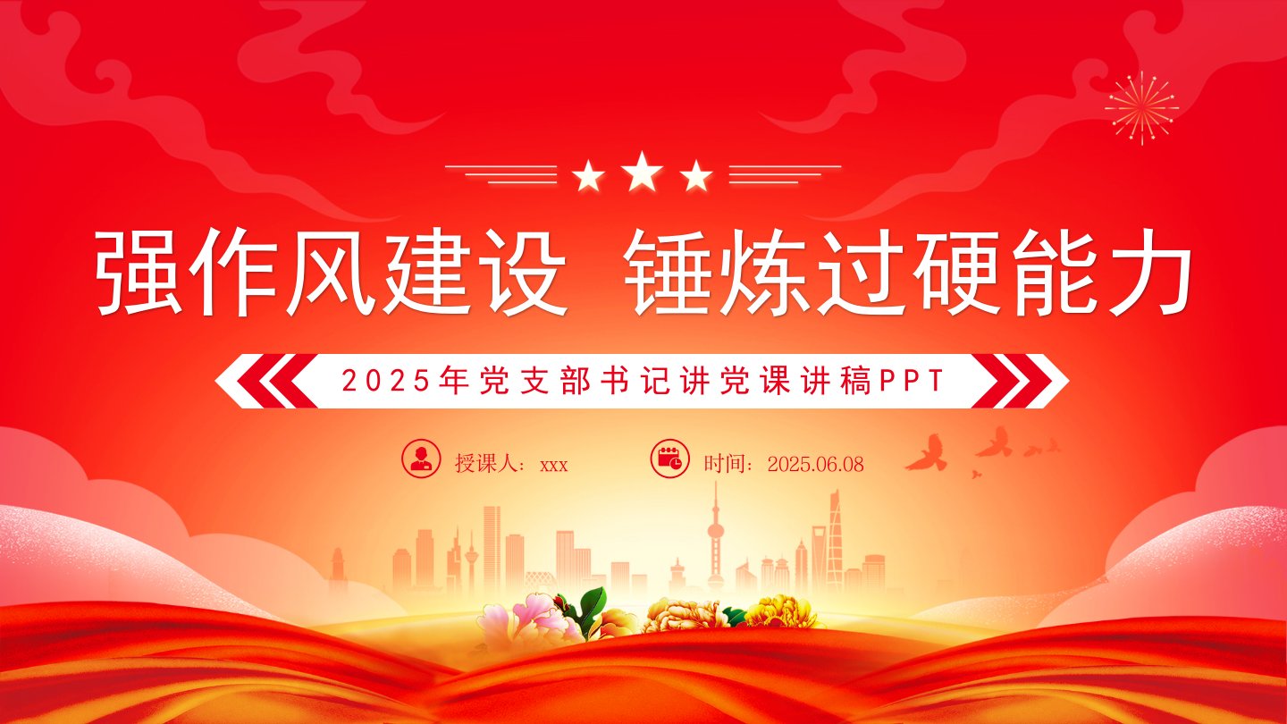标题:党课PPT课件:2025强作风建设锤炼过硬能力党支部书记讲党课