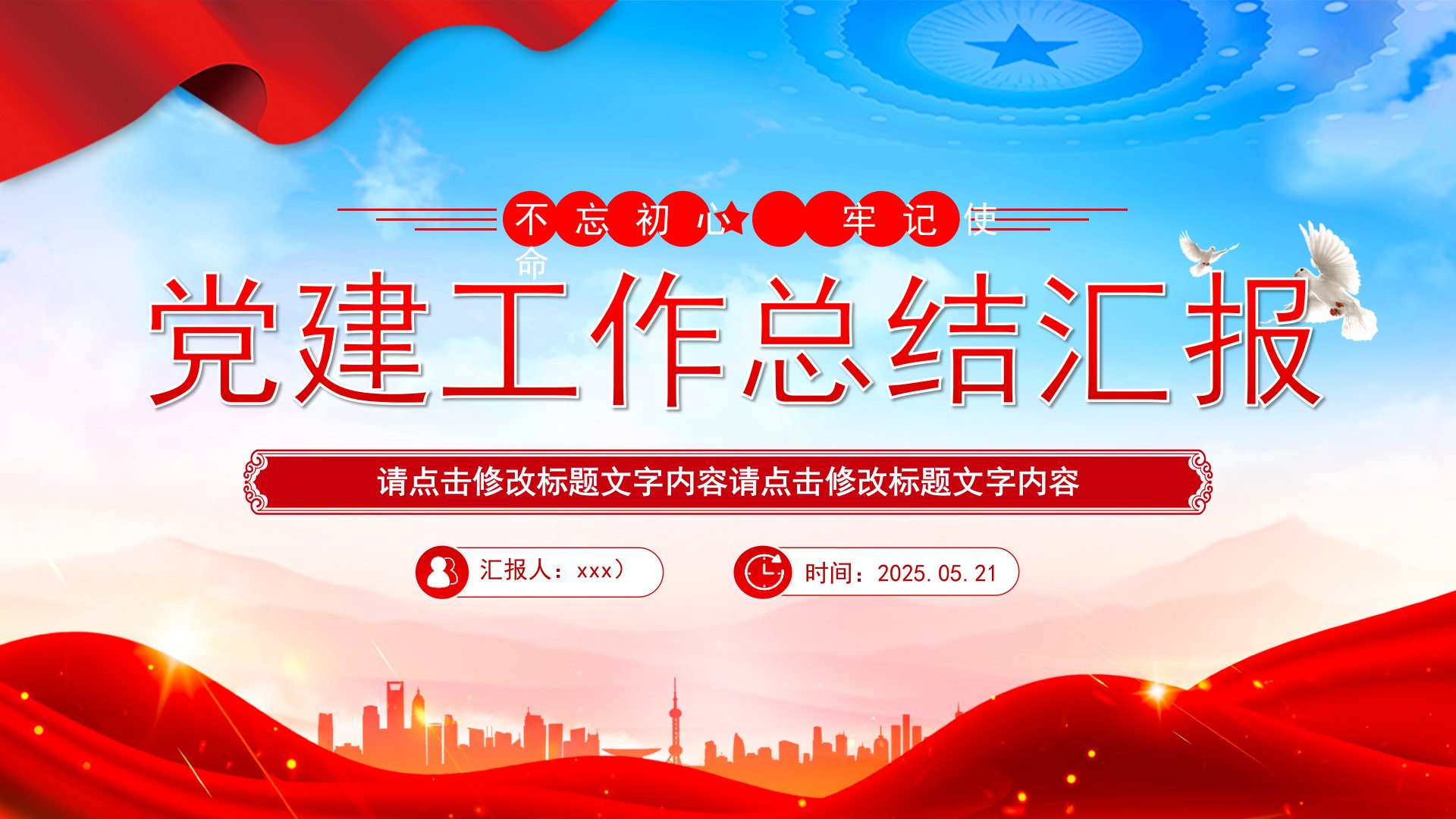 标题:2025年党建工作总结汇报PPT模板