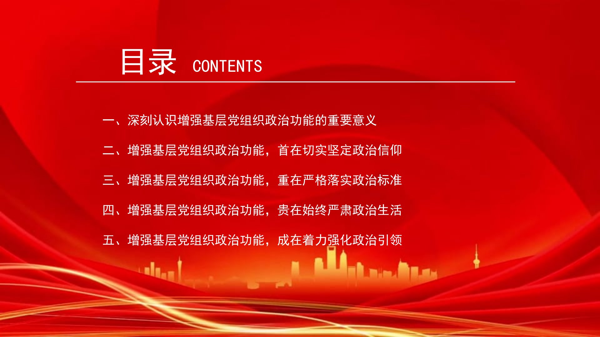党课PPT:增强基层党组织政治功能,推动基层党建高质量发展(PPT)