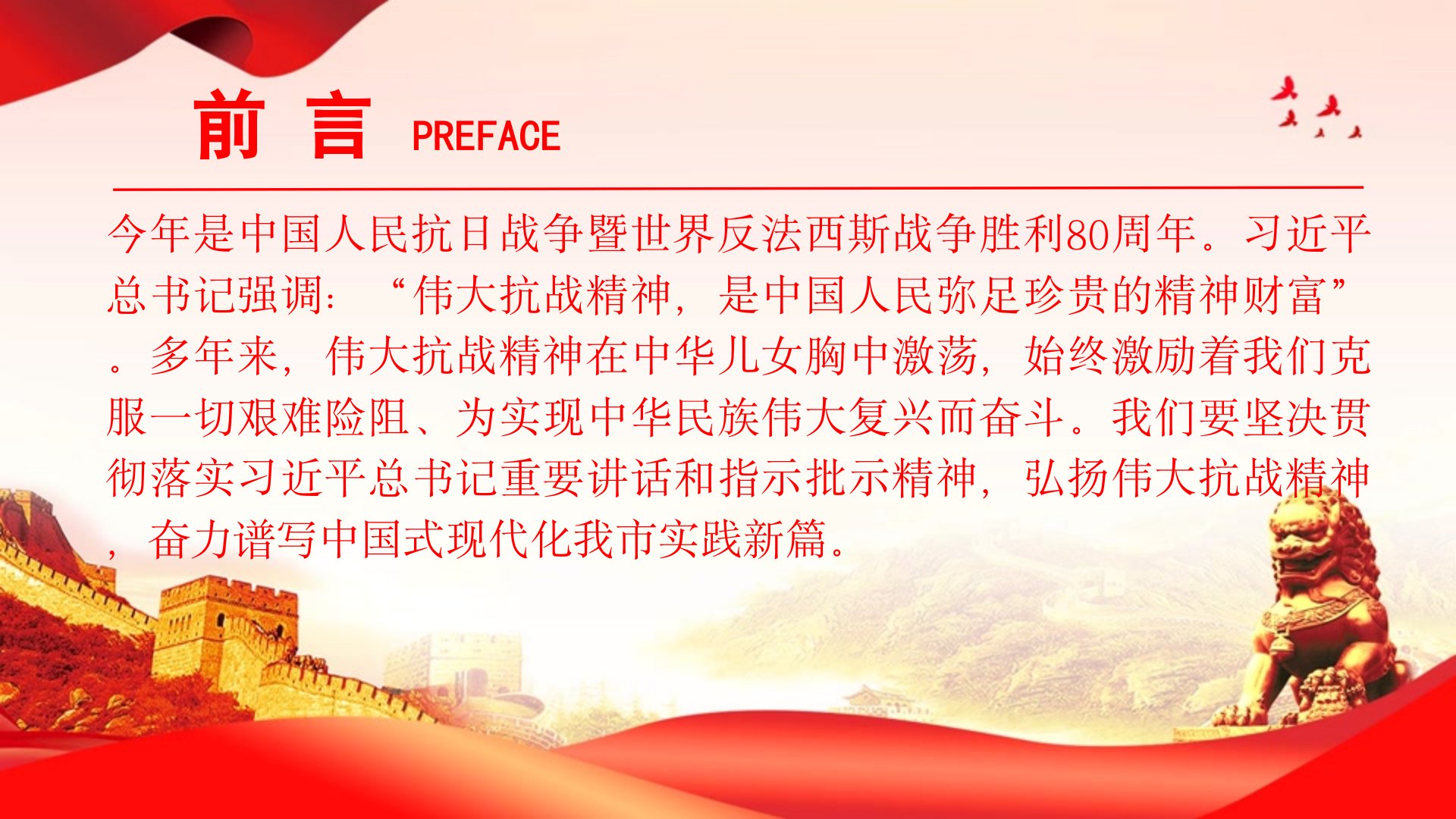 党课PPT:传承伟大抗战精神,不断把中国式现代化我市实践推向前进