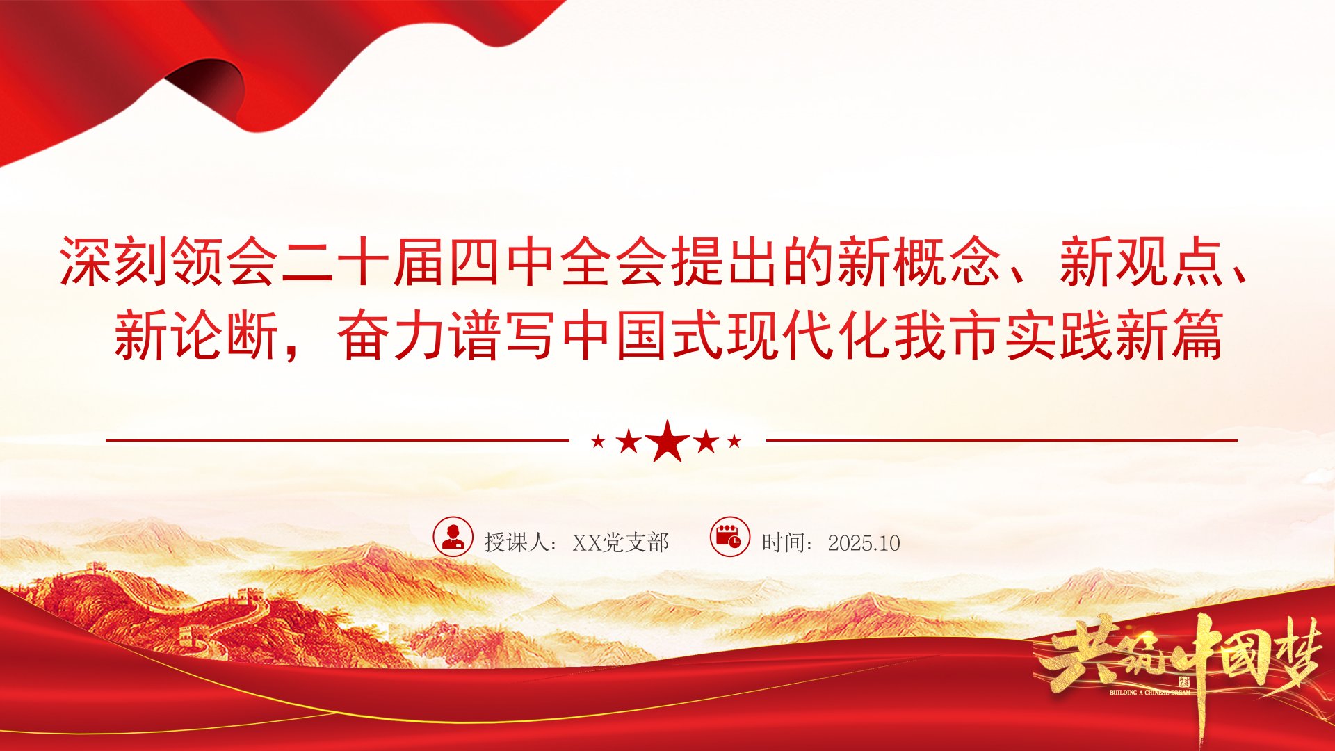 党课PPT:深刻领会二十届四中全会提出的新概念、新观点、新论断,奋力谱写中国式现代化我市实践新篇