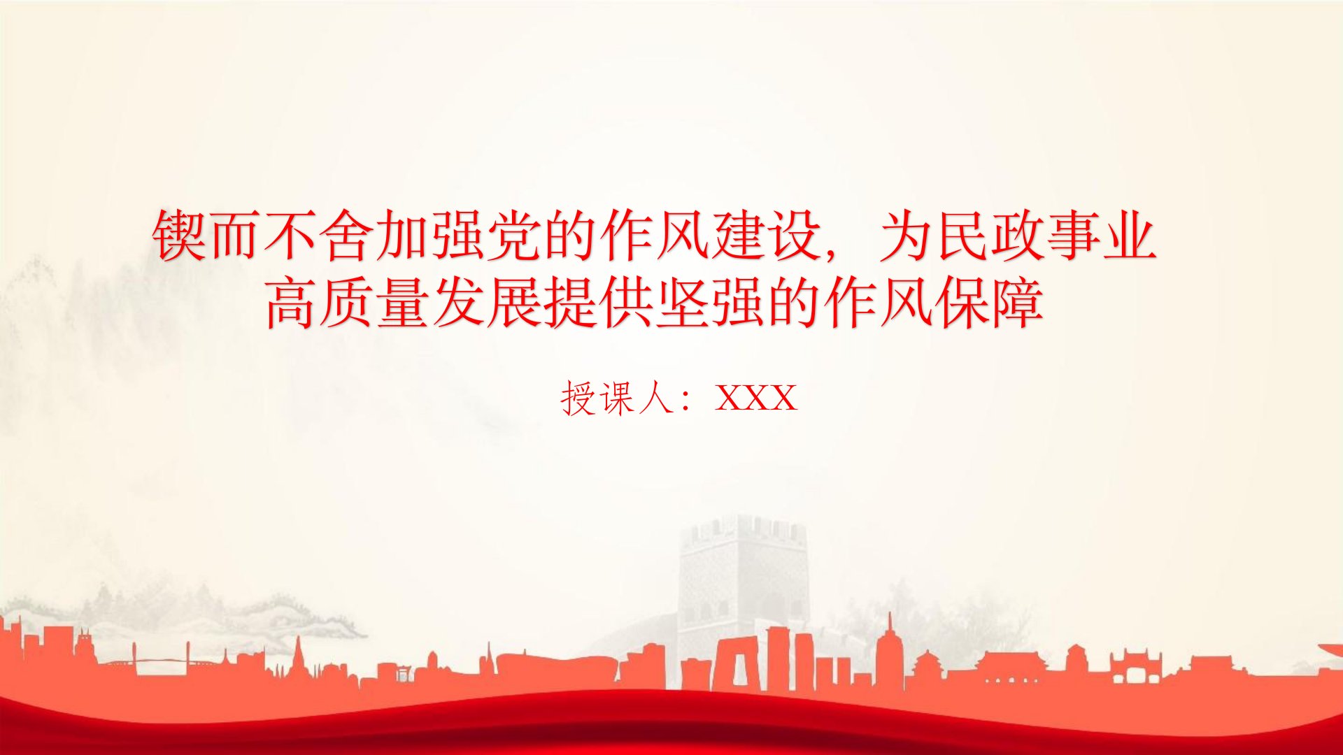 廉政党课PPT:锲而不舍加强党的作风建设,为民政事业高质量发展提供坚强的作风保障+