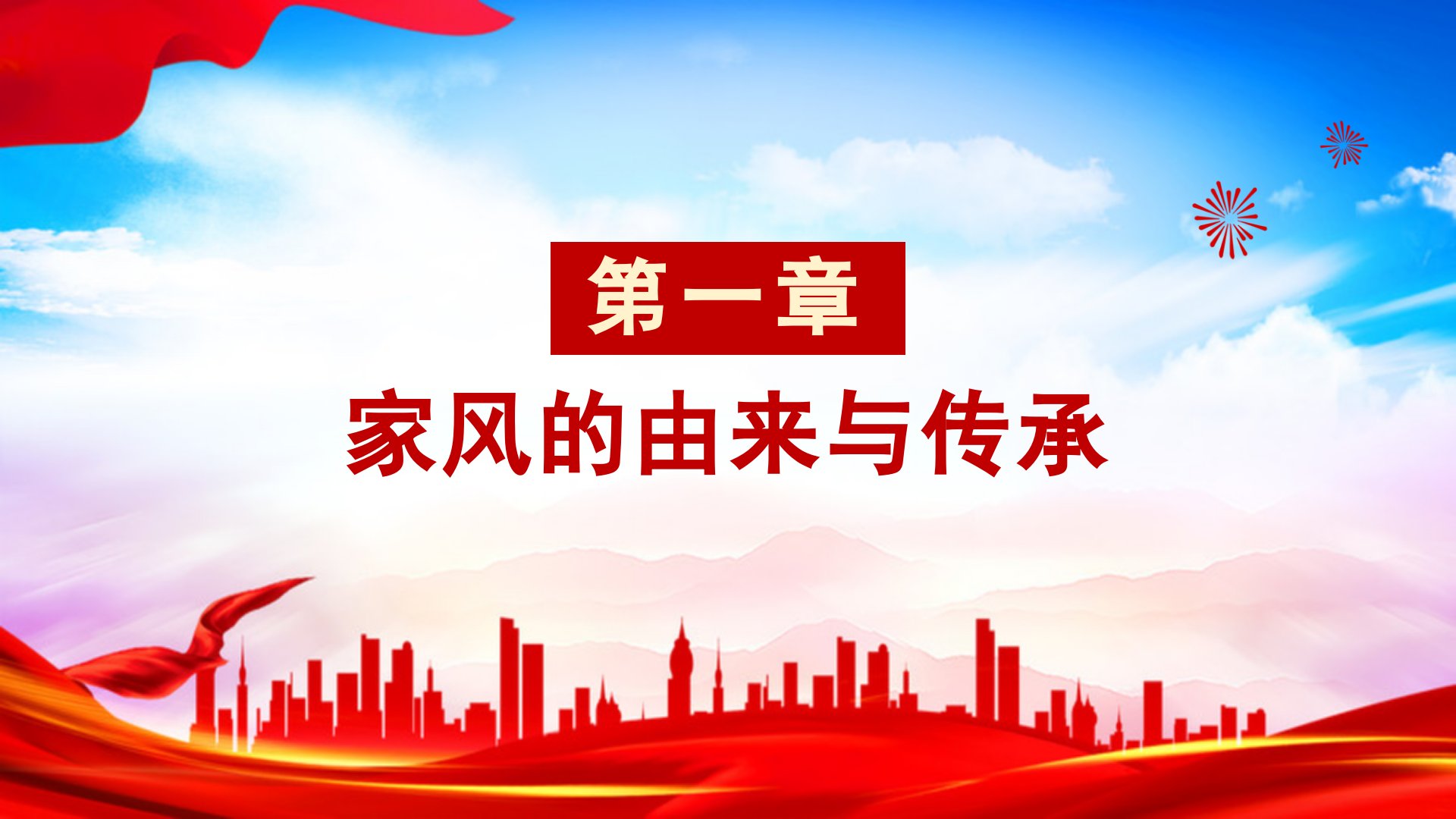 以家风建设带动党风政风建设家风的由来与传承家风的正反典型故事家风的新时代内涵和要求以家风建设带动党风政风建设家风的由来与传承第一章“绾发绾发,发亦鬒止;曰祗曰祗,敬亦慎止;靡专靡有,受之父母。鸣鹤匪和,析薪弗荷;隐忧孔疚,我堂靡构。义方既训,家道颖颖;岂敢荒宁,一日三省。”家风的由来家风不可忽视,家训不可小觑人品十分重要,习惯决定人生家风是一种集体认同,是经过家庭长期培养、长辈们反复实践、言传身教、世世代代传承下来的道德品质和生活作风。清代林则徐也告诫儿子“子孙若如我,留钱干什么?贤而多财,则损其智。子孙不如我,留钱做什么?愚而多财,益增其过”。以《颜氏家训》、《曾国藩家训》为代表的一整套孝亲...