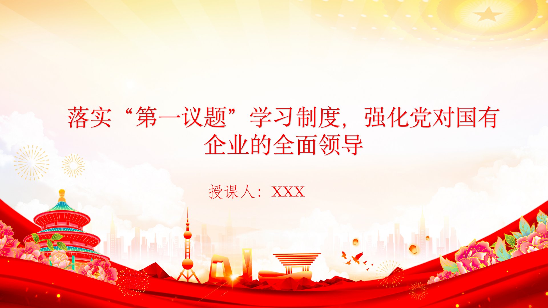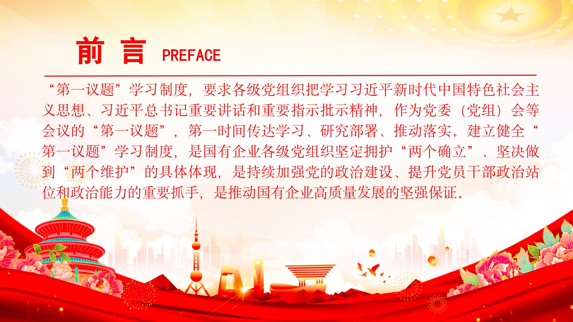 党课PPT:落实“第一议题”学习制度,强化党对国有企业的全面领导