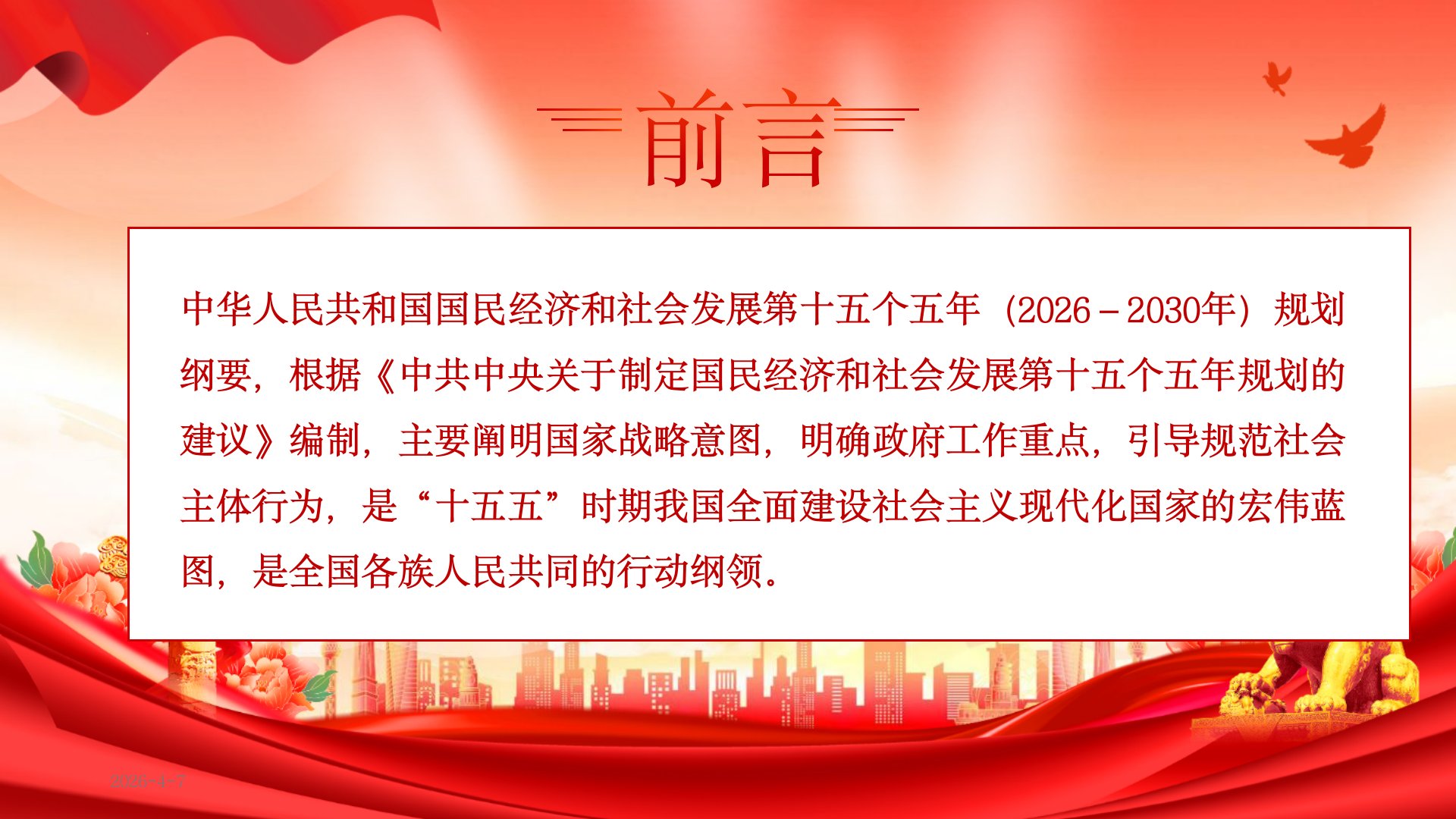 PPT:中华人民共和国国民经济和社会发展第十五个五年规划纲要