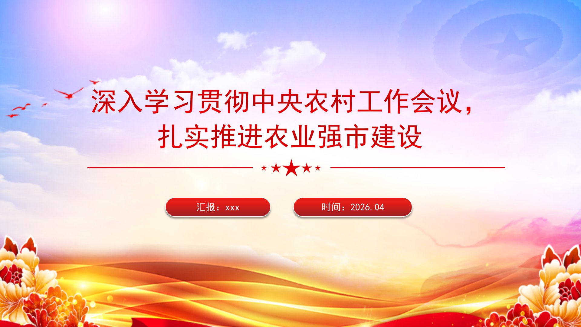 标题:党课PPT:深入学习贯彻中央农村工作会议,扎实推进农业强市建设