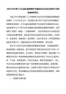 2022年开展“大力弘扬红旗渠精神”专题组织生活会党支部班子对照检查材料范文为深入学习贯彻党的二十大精神和习近平总书记视察安阳重要讲话精神,11月16日上午,党支部以“深入学习习近平总书记视察安阳重要讲话精神,大力弘扬红旗渠精神”为主题召开专题组织生活会。会前集体学习了习近平总书记视察河南安阳时的重要讲话精神,共同观看了专题片《根脉——红旗渠精神》,党员代表结合学习内容交流心得体会和感悟收获,纷纷表示将以此次组织生活会为契机,主动学习、多思多想,锤炼党性、提升素质,立足主责主业,打牢思想基础,创造性开展工作,为建设现代化示范区拼搏奉献、争先出彩。深入学习习近平总书记视察安阳重要讲话精神,“红旗...