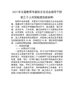 2023年主题教育专题民主生活会领导干部职工个人对照检查剖析材料
